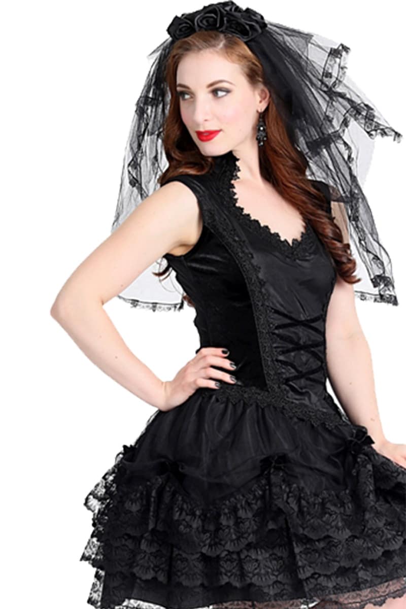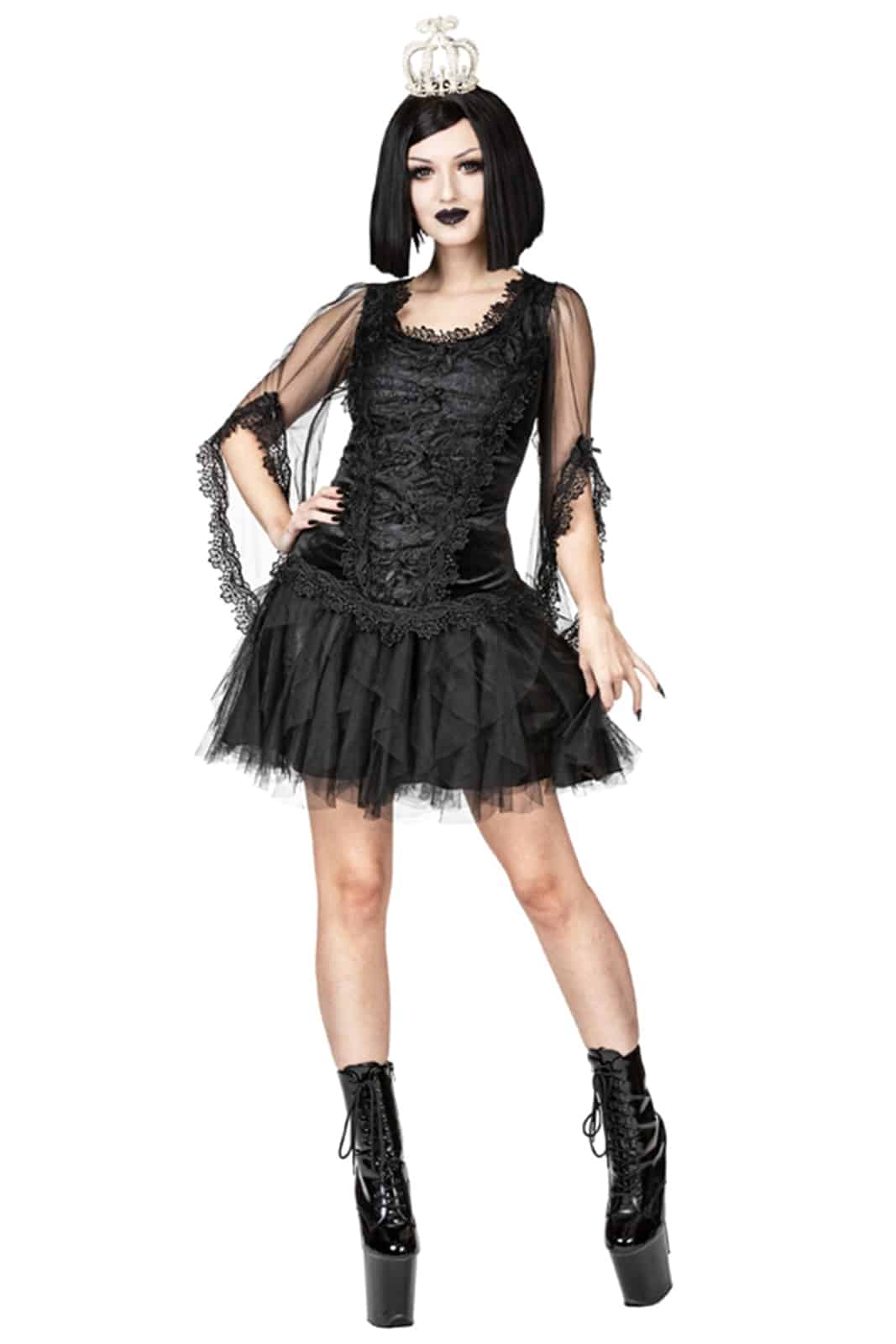 Verspielter Gothic Stufenminirock reich verziert mit floraler Spitze. Ausgestattet mit Satinfutter, Gummizugbund und acht Lagen Tüll für viel Volumen. -