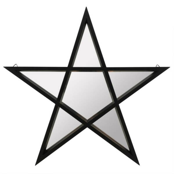 Gothic Occult mirror in the shape of a pentagram in a black wooden frame. With fastening hooks.