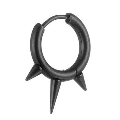 Markanter Hoop mit drei gleichmäßig angeordneten Spike-Elementen für einen kraftvollen, punk-inspirierten Look. Das dunkle Finish verstärkt die edgy Ausstrahlung und macht den Ohrring zum perfekten Accessoire für Gothic-, Punk- und Alternative-Styles. Kompakt, ausdrucksstark und ideal als Statement-Piece.