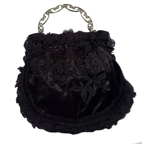 Die edle Variante einer Tote Bag! Aus Samt mit sizilianischer Spitze und Satinbändern verziert. Kleine schwarze Rosen und ein feines Satinfutter machen diese Tasche zu einer bezaubernden Begleitung.