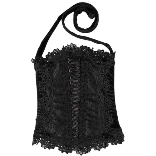 Diese Tasche ist ein echter Hingucker für alle, die Gothic-Mode mit verspieltem Twist lieben. Das Design aus glattem Polyurethan kombiniert klassische Corsagen-Elemente mit auffälligen Fledermausflügeln an den Seiten. Silberfarbene Nieten, Ösen und D-Ringe sorgen für den nötigen Industrial-Touch, während das vordere Schnürdetail an ein viktorianisches Mieder erinnert. Der verstellbare Schulterriemen mit Kettenelement verleiht der Tasche ein edles Finish. Trotz ihres auffälligen Looks bietet sie genug Platz für Smartphone, Portemonnaie und kleine Essentials – perfekt für Alltag, Clubnächte oder Festivals.