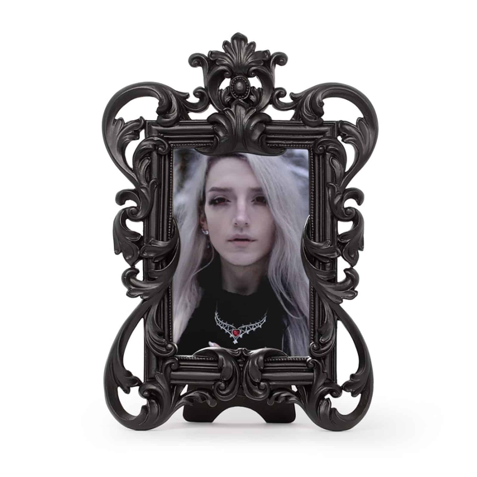 Wie ein Relikt aus einer vergangenen Epoche: Der „Obscura Rococo“ Bilderrahmen vereint opulente Ornamente mit düsterer Eleganz. Verspielte, barocke Verzierungen und fließende Formen treffen auf ein tiefschwarzes Finish und verleihen deinen Erinnerungen eine dramatische, fast theatralische Präsenz – perfekt für Gothic Interiors und stilvolle Vintage-Arrangements.