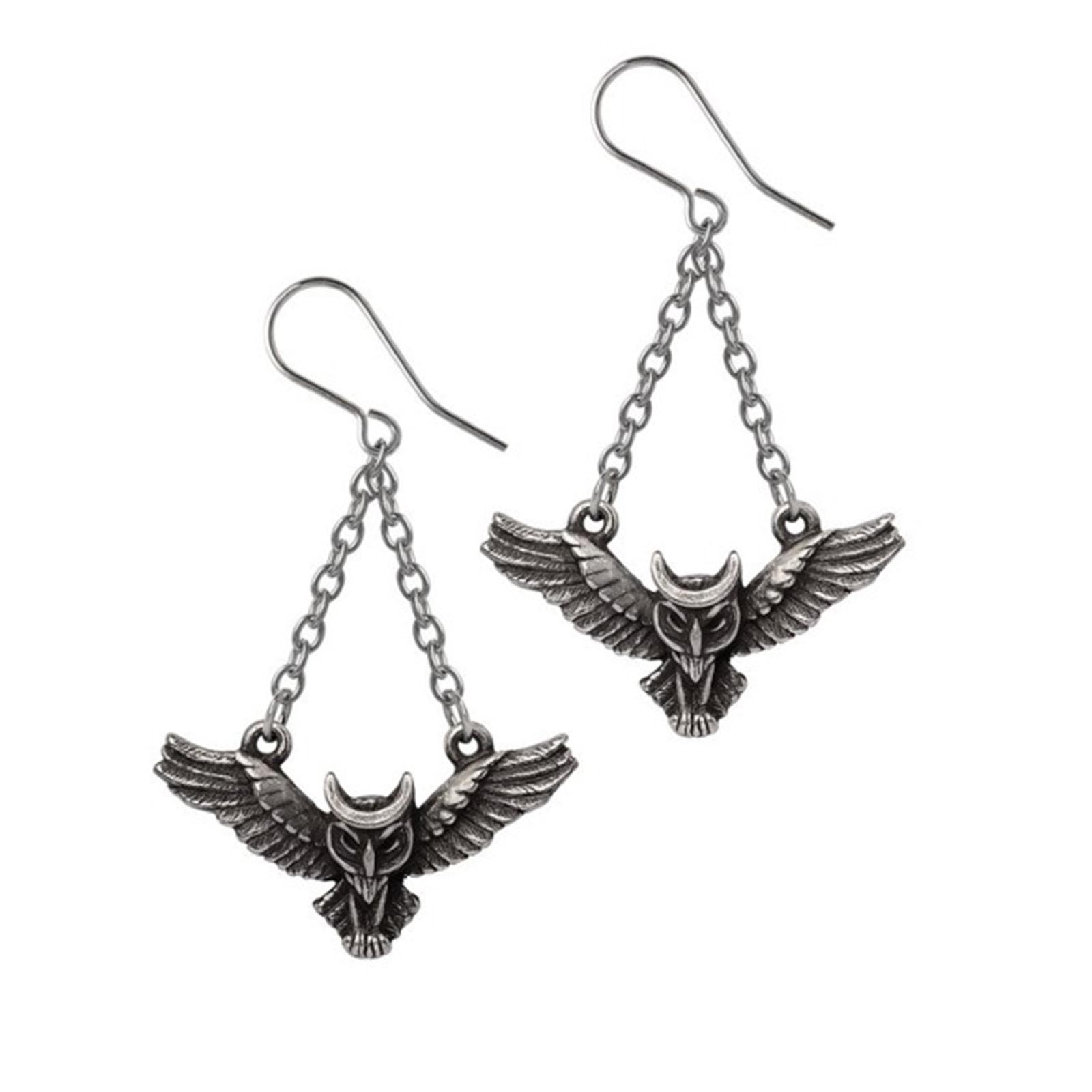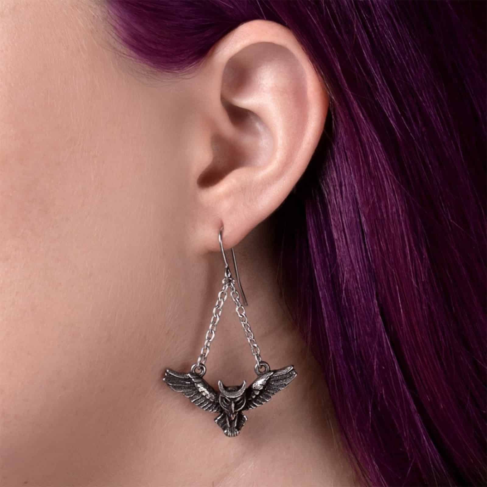 Diese filigranen Ohrringe verkörpern die Weisheit der Nacht und den schützenden Geist der Eule. Das detailreiche Motiv zeigt eine Eule im Flug, gekrönt von einer Mondsichel als Symbol für Intuition, Magie und verborgene Erkenntnis. Die zarten Ketten verleihen den Ohrringen eine elegante, schwebende Bewegung und unterstreichen ihre mystische Ausstrahlung. Gefertigt aus feinem englischem Zinn mit antikem Finish, verbinden diese Ohrhänger gothic Eleganz mit mythologischer Tiefe und sind ein ausdrucksstarkes Schmuckstück für alle, die sich von der Magie der Nacht angezogen fühlen.