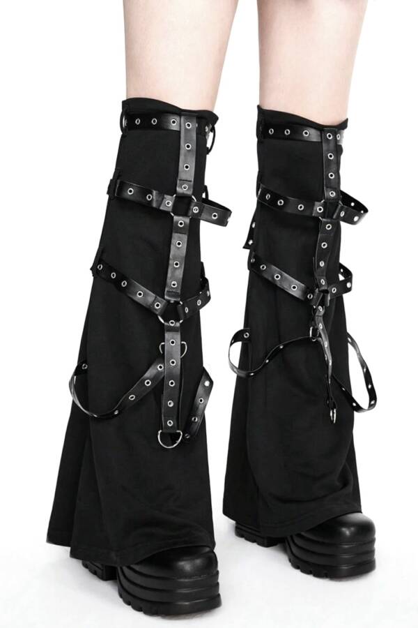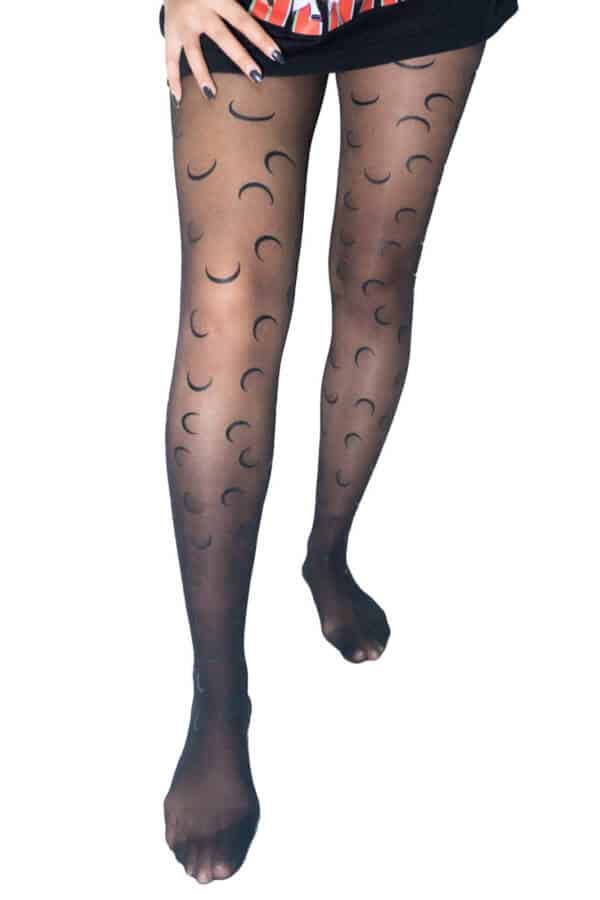 These elegant tights consist of contrasting black imitation stockings with all-round straps, a cage waist design printed with a silver buckle fastening and two suspender straps at the back.
