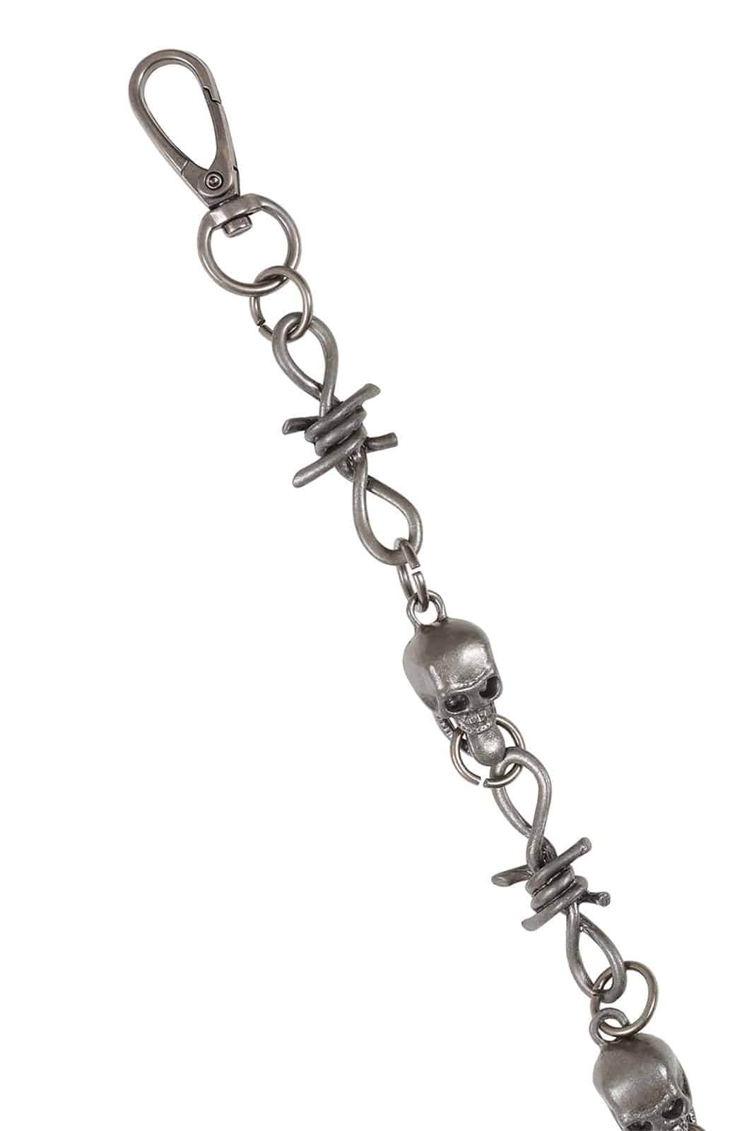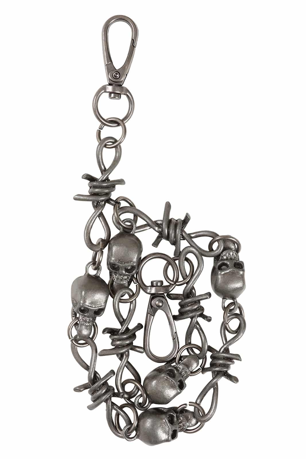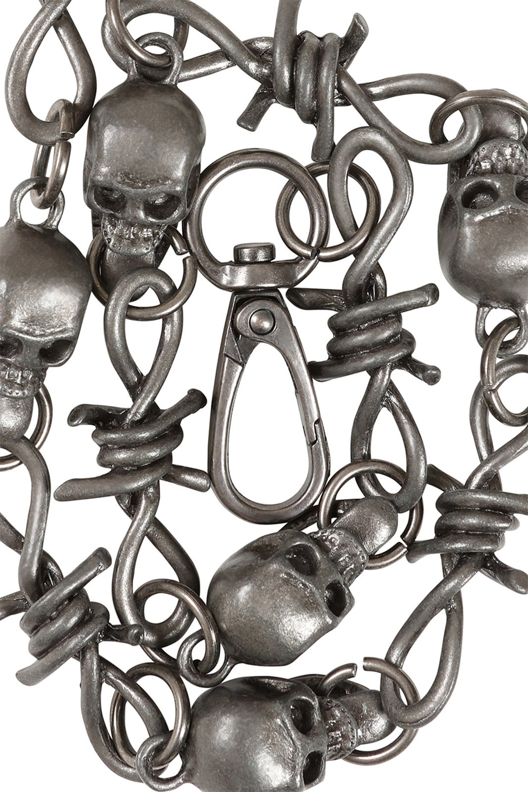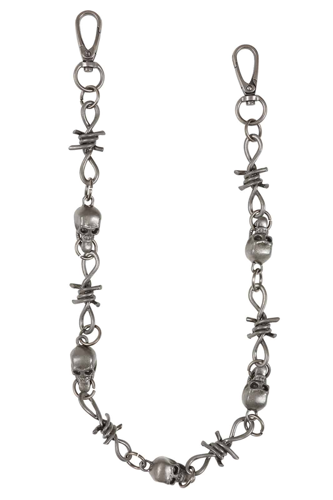 Ein raues Statement aus Metall und Attitüde: Die Blackthorn Chain verbindet düstere Symbolik mit rebellischem Design. Inspiriert von Stacheldraht-Elementen und kombiniert mit markanten Totenkopf-Details verleiht sie jedem Outfit eine kompromisslose, alternative Note.