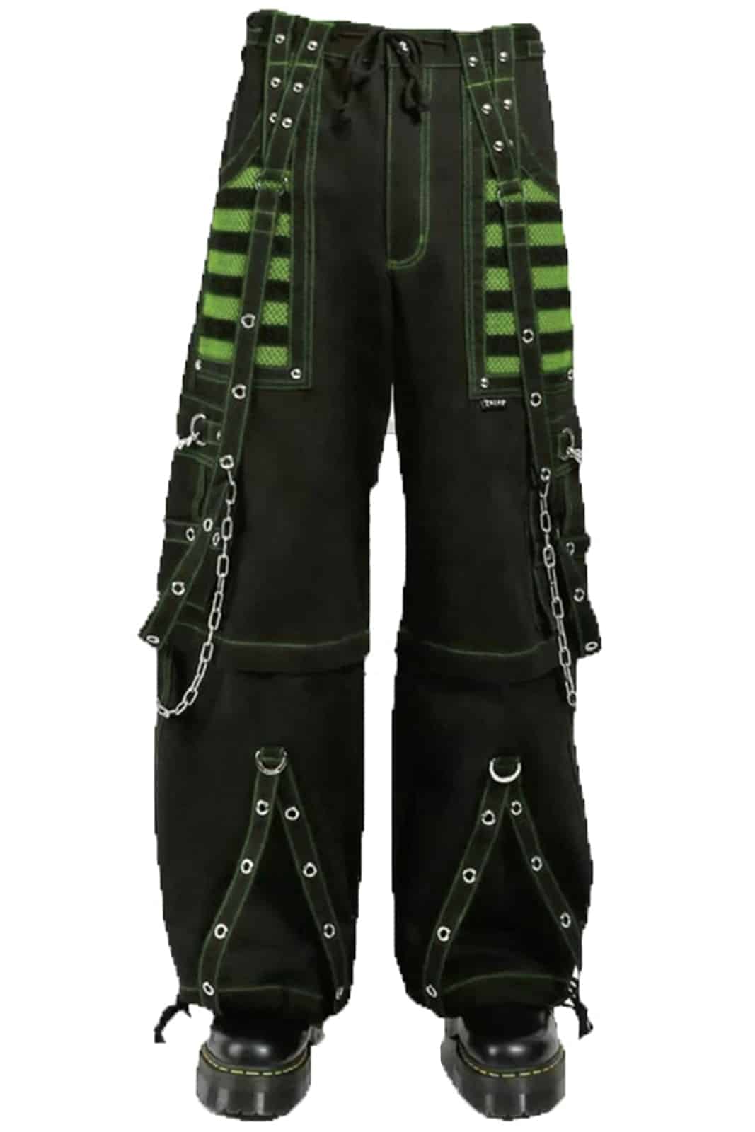 Ein pulsierender Mix aus Cyber-Energie und dunkler Attitüde: Die Toxic Grid Bondage Hose bringt mit ihren grün-schwarzen Raster-Elementen und metallischen Details eine futuristische, fast technoide Ästhetik in deinen Look. Ein echtes Statement zwischen Rave, Industrial und Gothic.