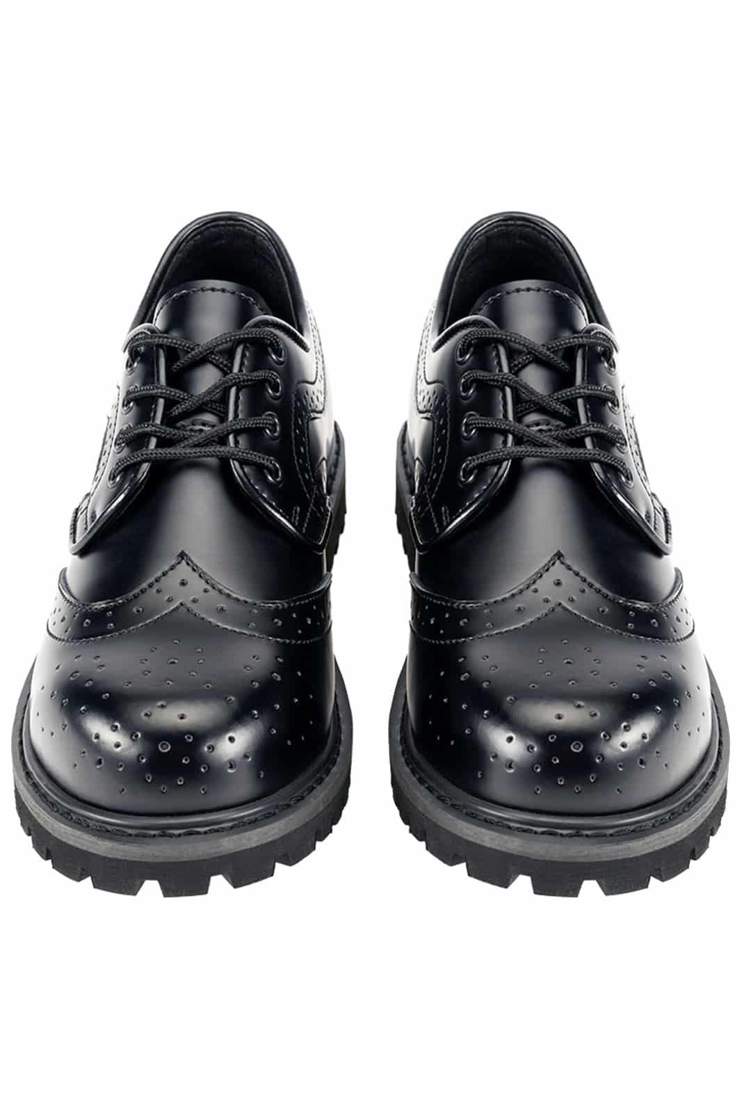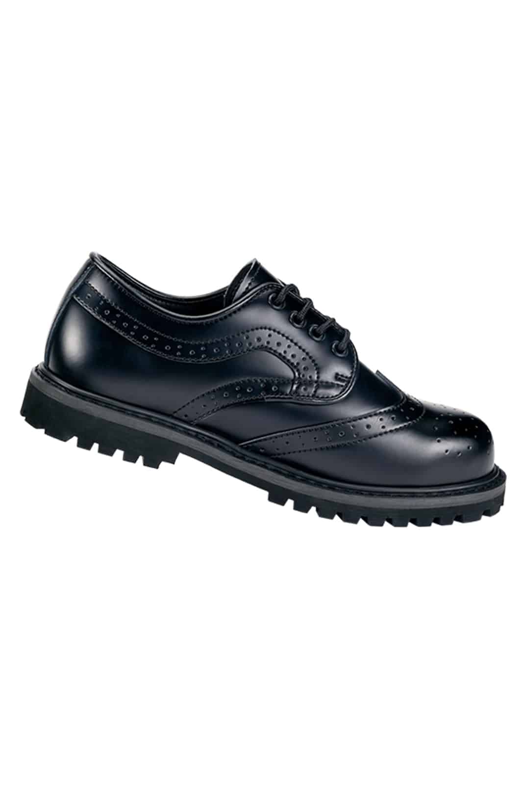 Diese klassischen Halbschuhe verbinden zeitlosen Budapester-Style mit robuster Verarbeitung. Das hochwertige, polierte Echtleder mit typischer Lochverzierung verleiht ihnen eine elegante, zugleich markante Optik. Die 4-Loch-Schnürung sorgt für einen cleanen Look, während Stahlkappe und geklebte sowie genähte Profilsohle Stabilität und Langlebigkeit garantieren – ideal für Alltag, Business mit Attitude oder Szene-Outfits.