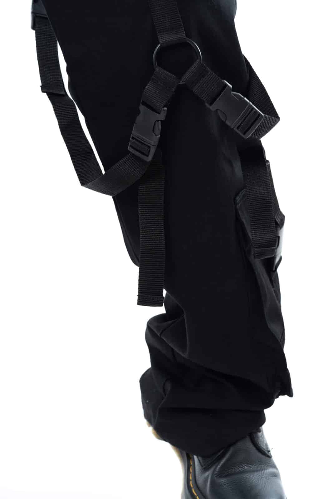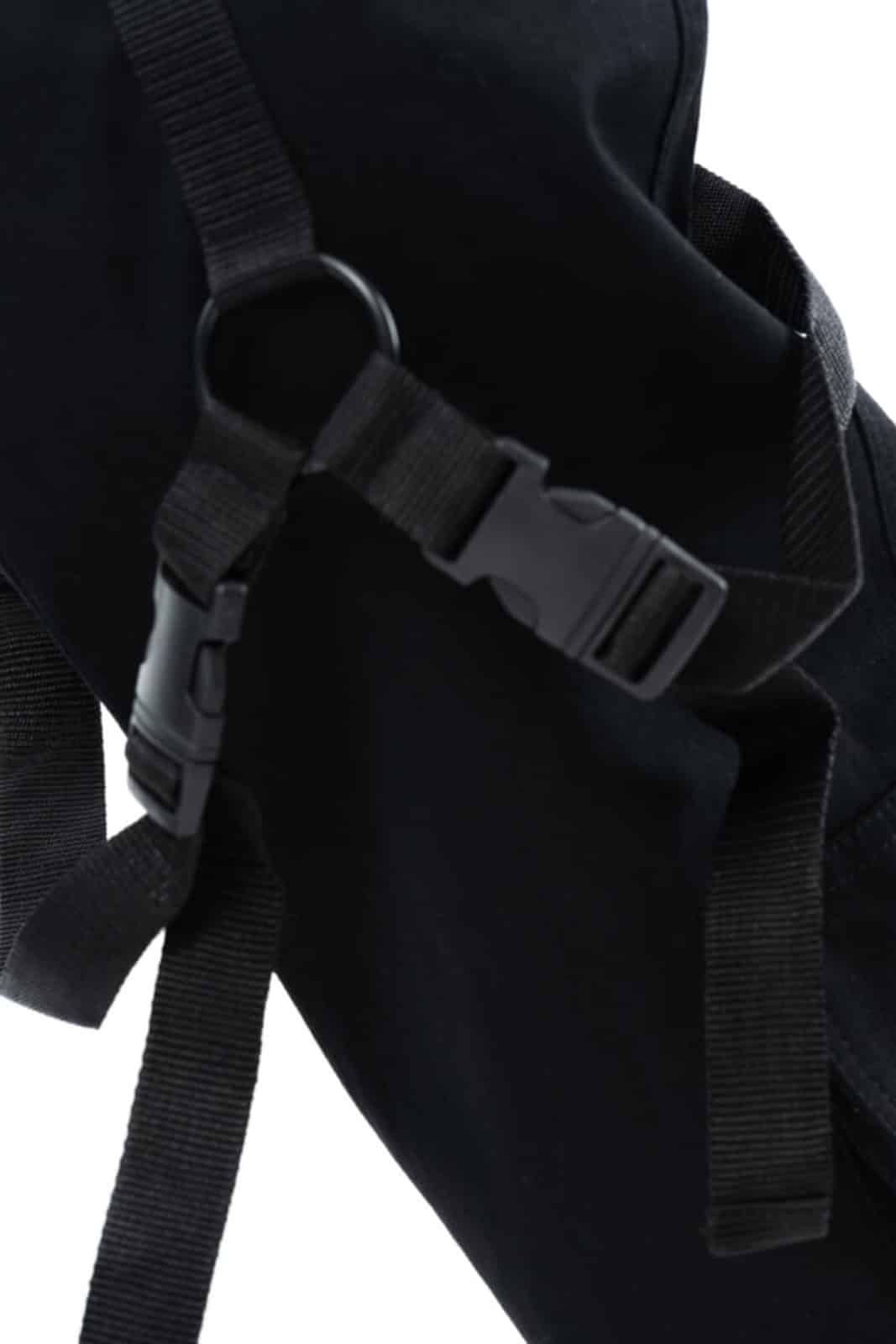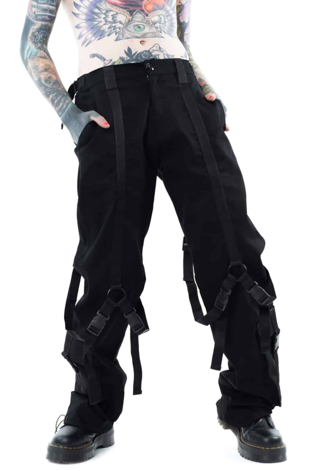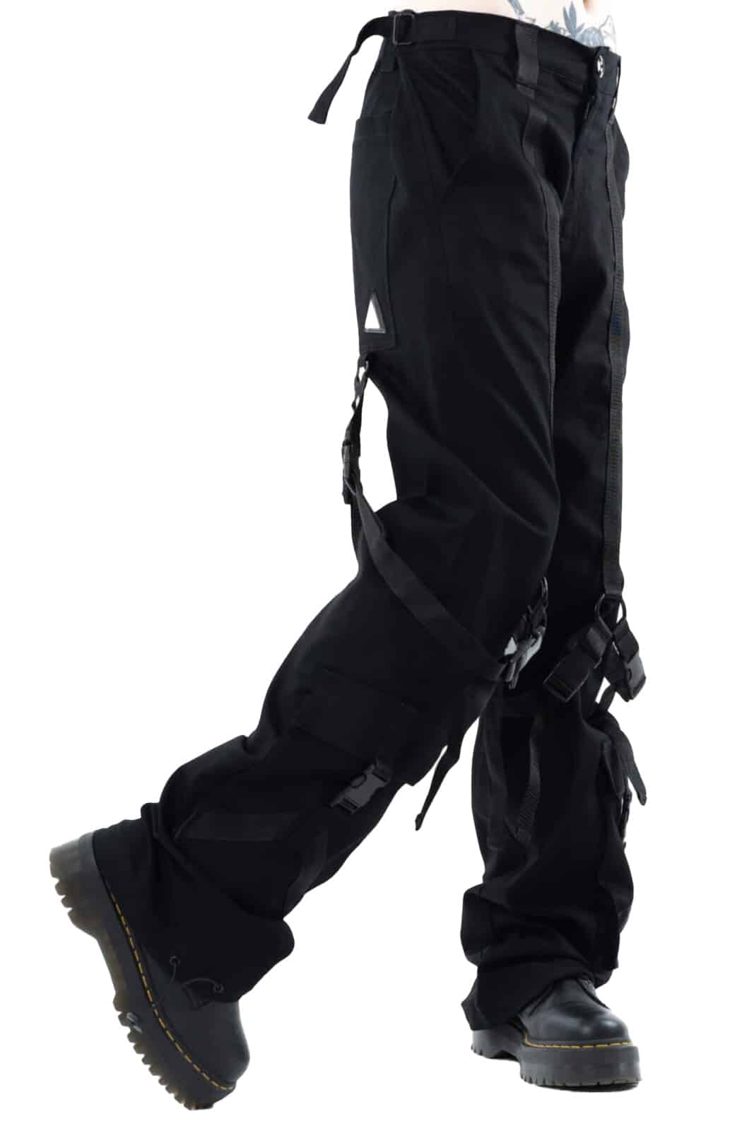 Men’s trousers made from a lightweight cotton blend with two slit pockets at the front and two slit pockets at the back. Decorated with straps and emblem.