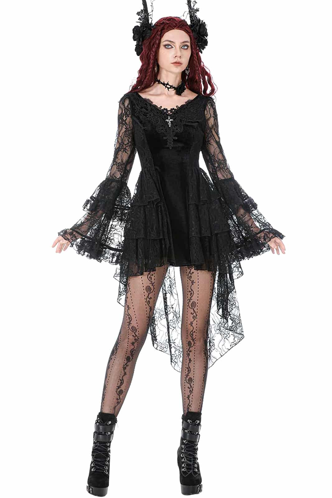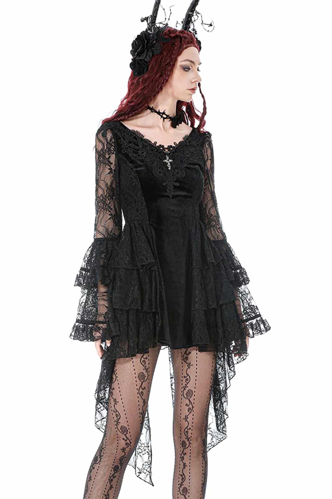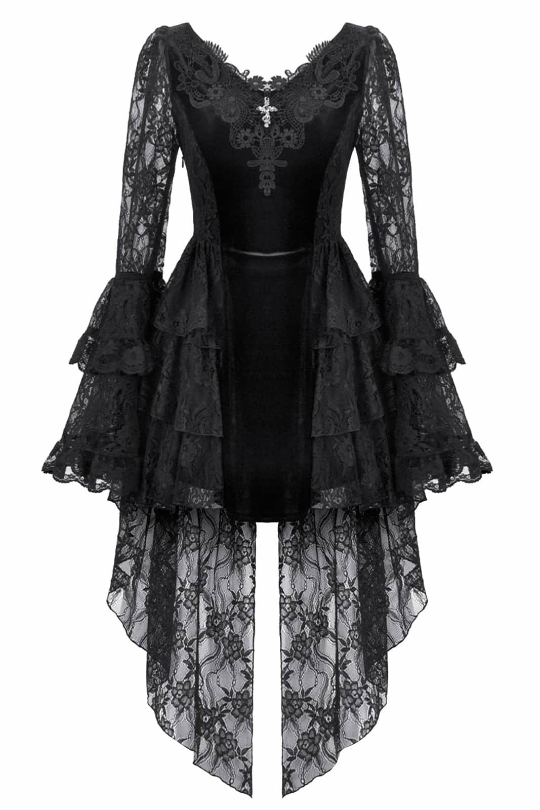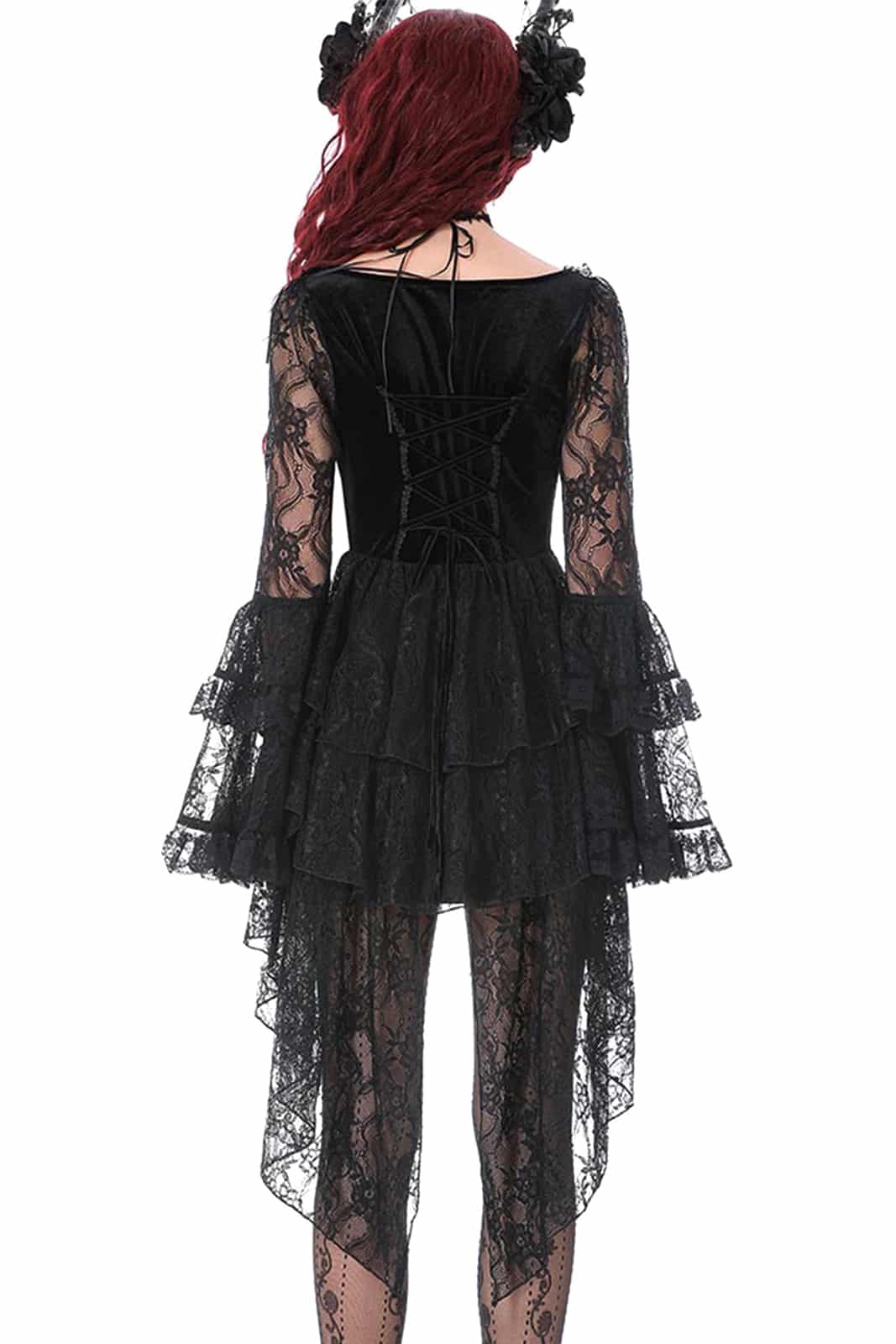 Dunkle Eleganz trifft auf romantische Dramatik – das Mourning Princess Kleid vereint weichen Samt mit fließender Spitze und schafft eine ausdrucksstarke Silhouette im viktorianischen Gothic Stil. Raffinierte Details und verspielte Volants machen dieses Kleid zu einem echten Blickfang.