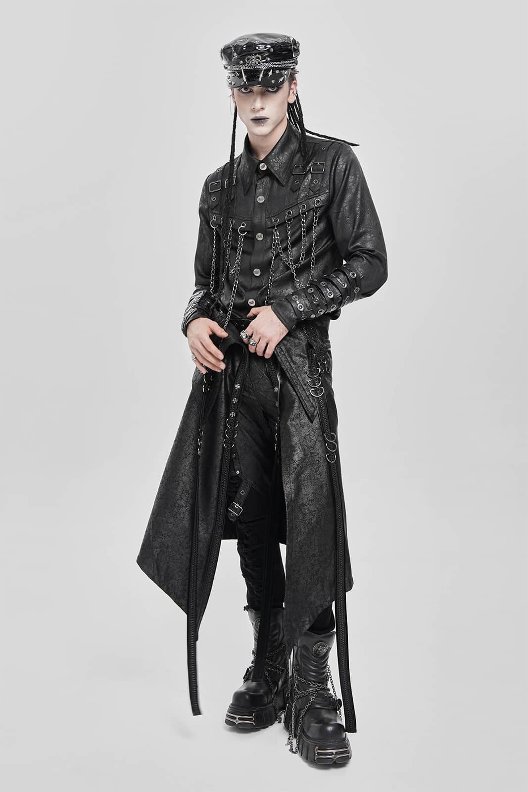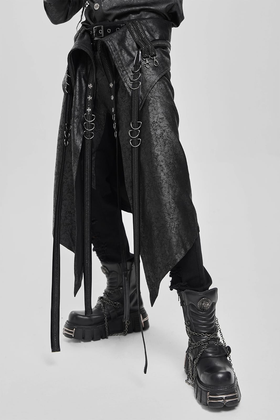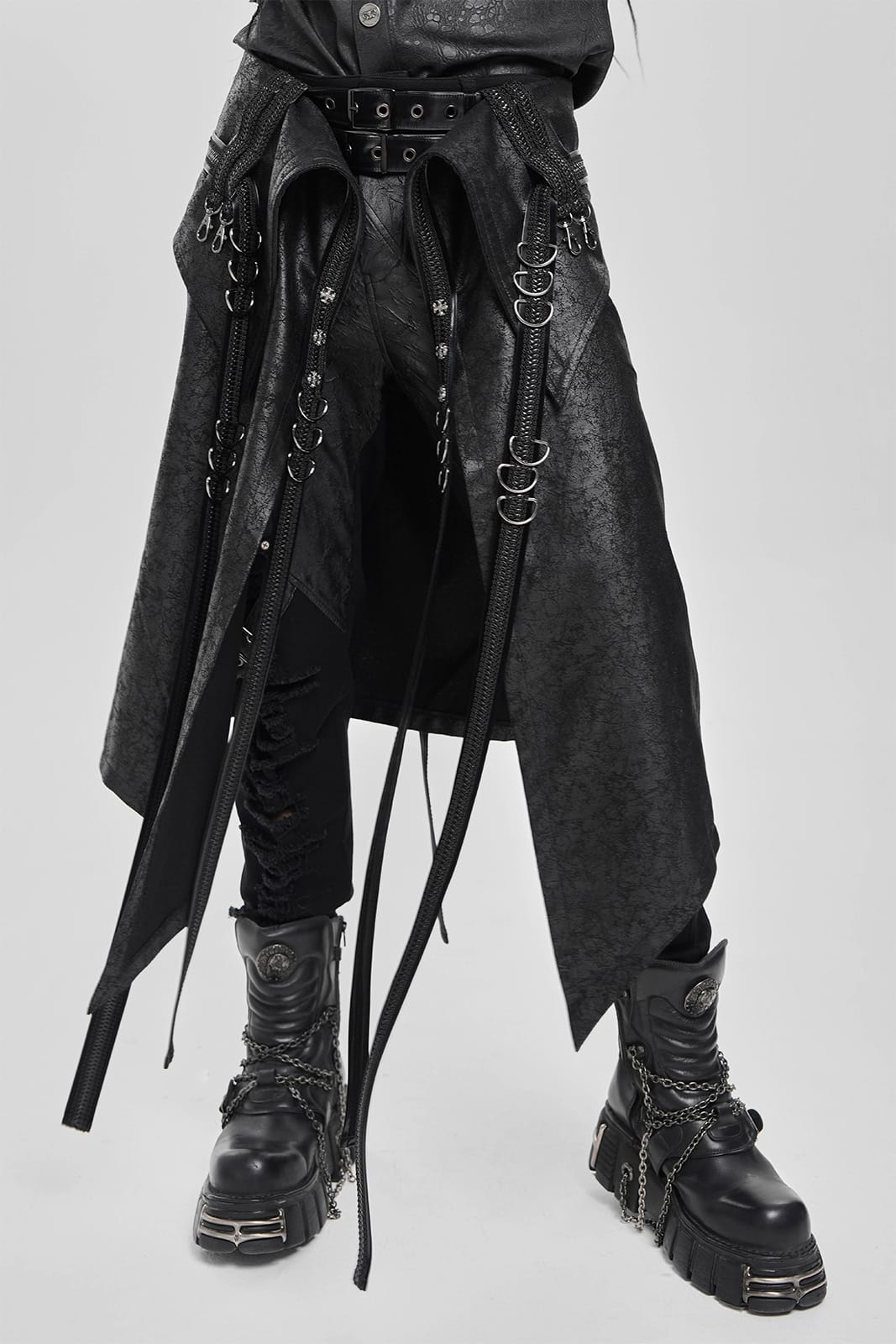 Ein markanter Überrock mit kompromissloser Präsenz: „Stingray“ kombiniert eine strukturierte Cracked-Optik mit futuristischen Harness-Elementen. Die spitz zulaufende Front und die hängenden Riemen mit D-Ringen verleihen dem Look eine kraftvolle, industrielle Dynamik.