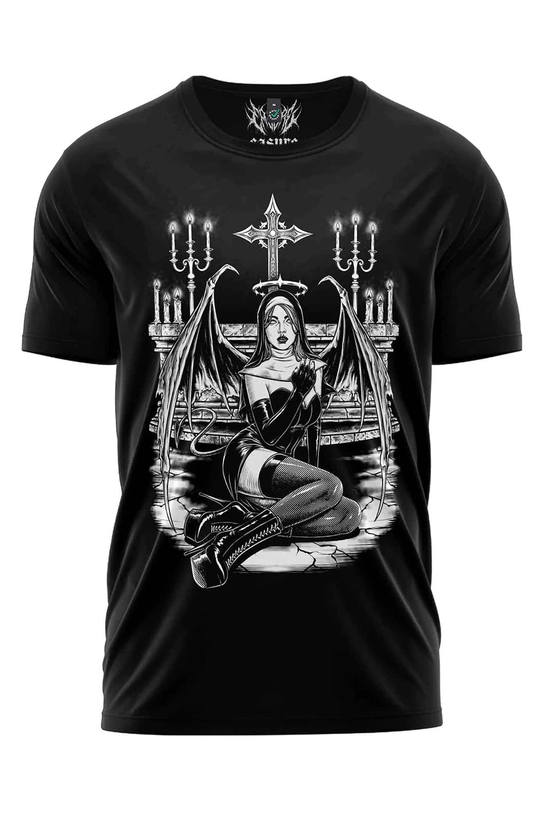 Werde mit diesem düsteren Shirt zum Blickfang der Gothic- und Metal-Szene. Das schwere Unisex-Shirt aus Bio-Baumwolle zeigt das eindrucksvolle Motiv einer dämonischen Nonne – provokant, mystisch und voller Dark-Aesthetic-Energie. Kontrastreiche Details, sakrale Symbolik und eine klare Haltung machen dieses Design zu einem kompromisslosen Statement für alle, die ihre dunkle Seite bewusst zeigen.