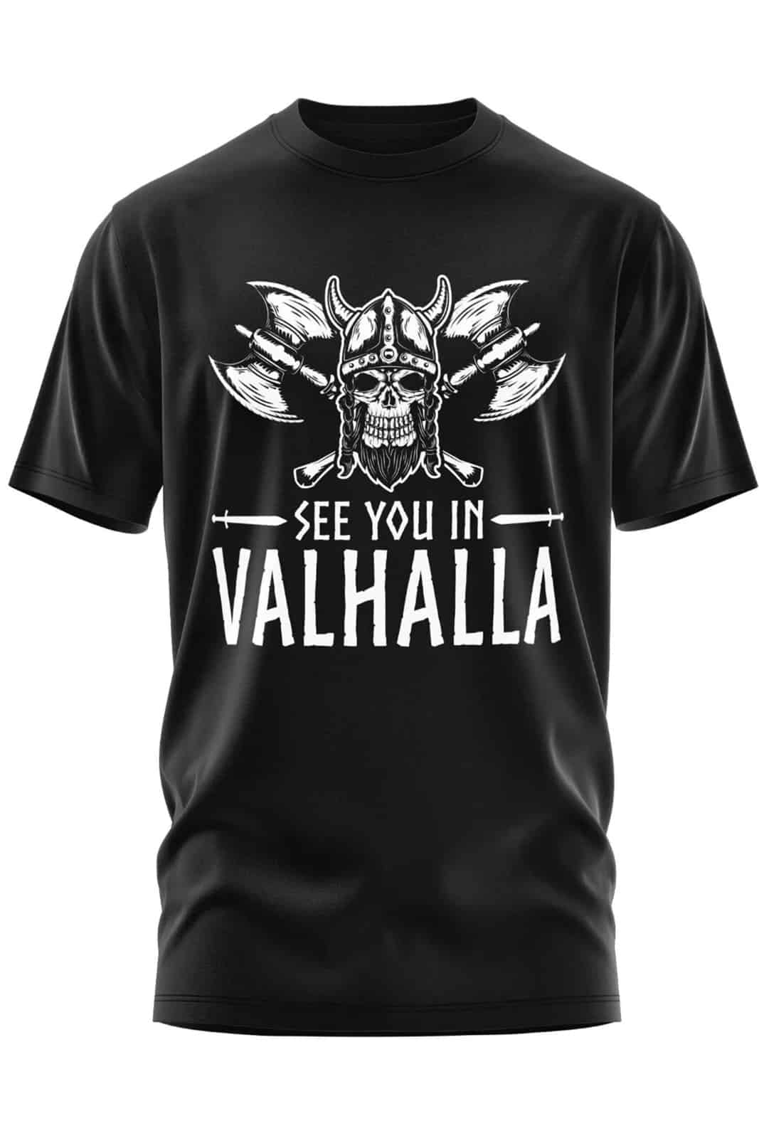 Kraftvoll, rau und voller nordischer Symbolik: Das „See You in Valhalla“ Shirt zeigt einen Wikinger-Schädel mit Helm und gekreuzten Äxten – ein klares Statement für Stärke, Ehre und den Weg nach Walhalla. Der markante Schriftzug unterstreicht die kämpferische Haltung und macht das Shirt zum Blickfang für alle, die ihren Stil selbstbewusst tragen.
