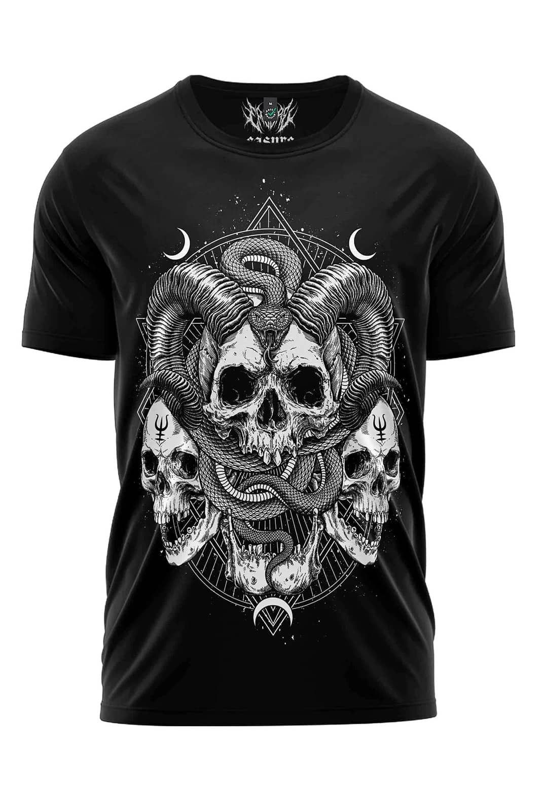 Ein kraftvolles Gothic-Statement für alle, die dunkle Symbolik bewusst tragen. Das schwere Unisex-Shirt aus Bio-Baumwolle zeigt ein detailreiches Motiv aus Schädeln, Schlangen und okkulter Geometrie – roh, intensiv und kompromisslos. Dark Art mit Tiefe, fernab von Mainstream-Ästhetik, kombiniert mit nachhaltiger Qualität und langlebiger Verarbeitung.