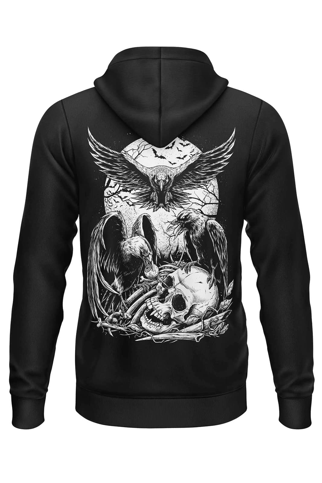 Der Crows Zipper von EASURE ist mehr als nur ein Hoodie – er verbindet düstere Gothic-Ästhetik mit langlebigem Tragekomfort. Das markante Rückenmotiv aus Krähen, Adler und Schädeln setzt ein kraftvolles Statement und verleiht dem Zipper eine rebellische, kunstvolle Ausstrahlung. Gefertigt aus schwerer Bio-Baumwolle überzeugt er durch Wärme, Robustheit und Alltagstauglichkeit – ideal für Festivals, Konzerte oder urbane Looks mit Charakter.