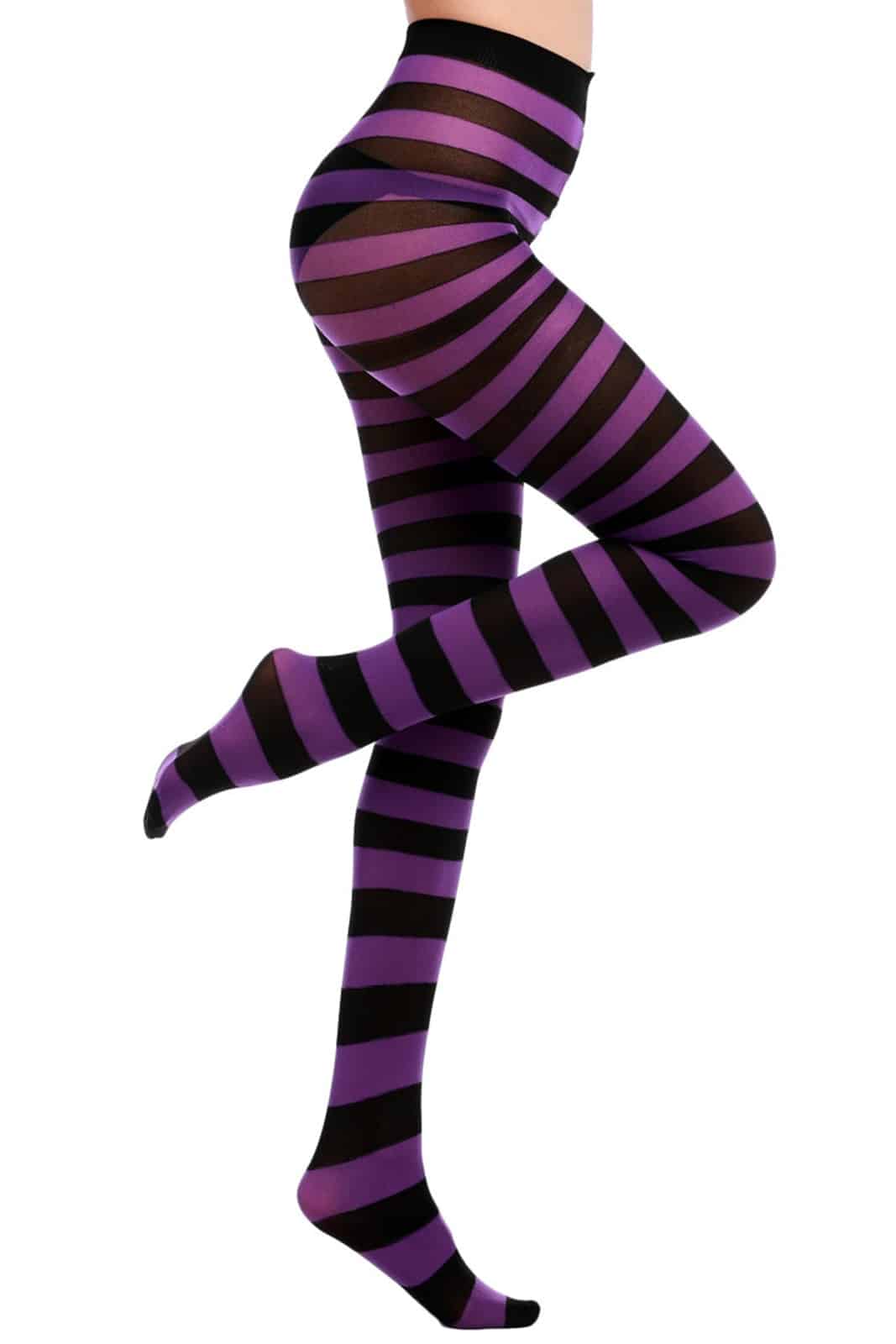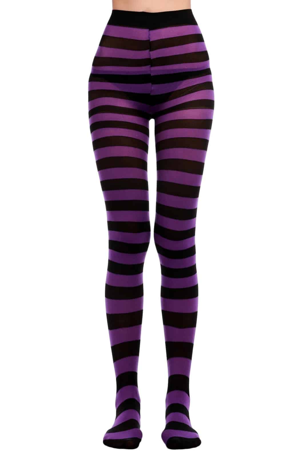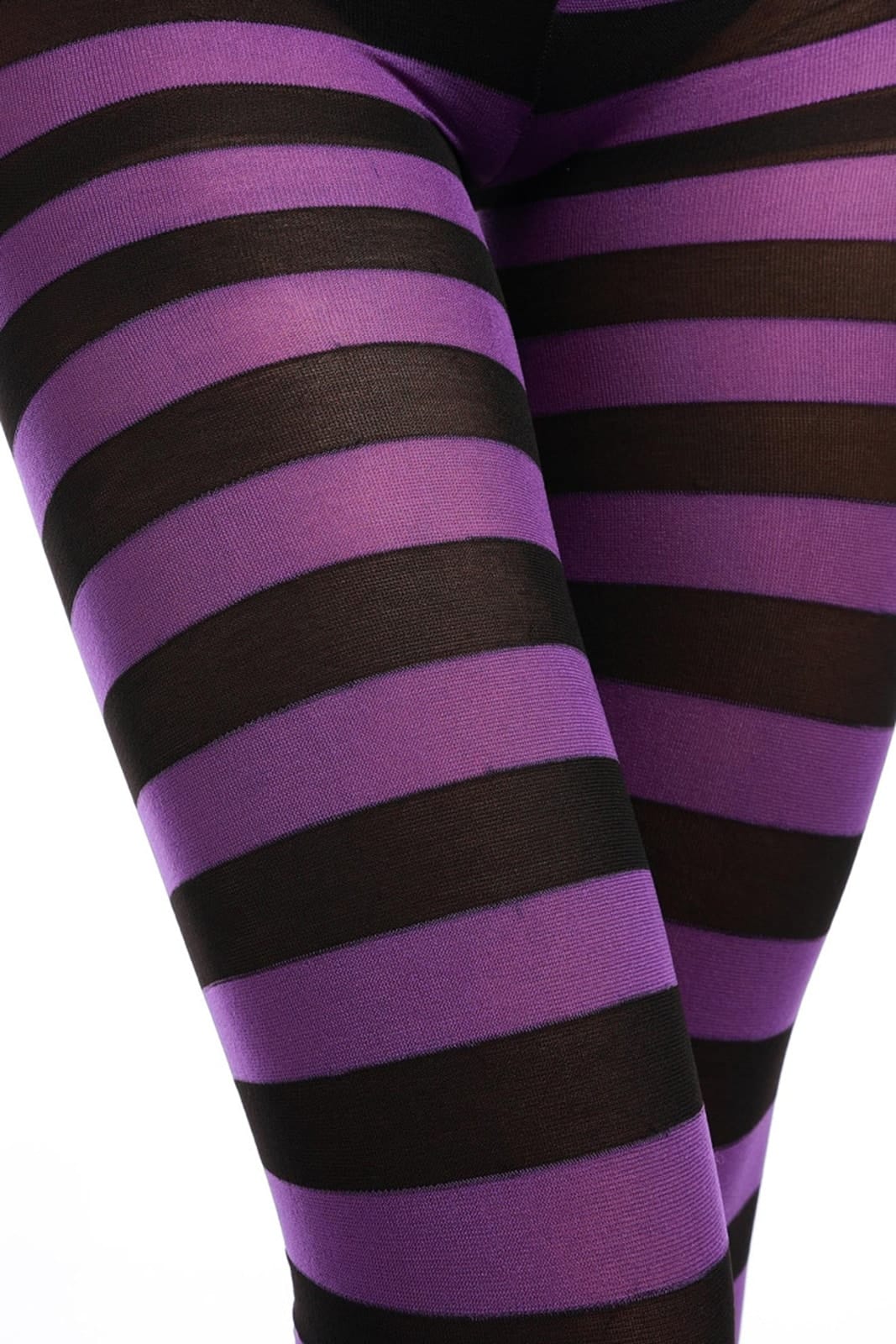 Strumpfhose aus feinmaschigem Netz in schwarz/lila gestreift für alle Gelegenheiten.
