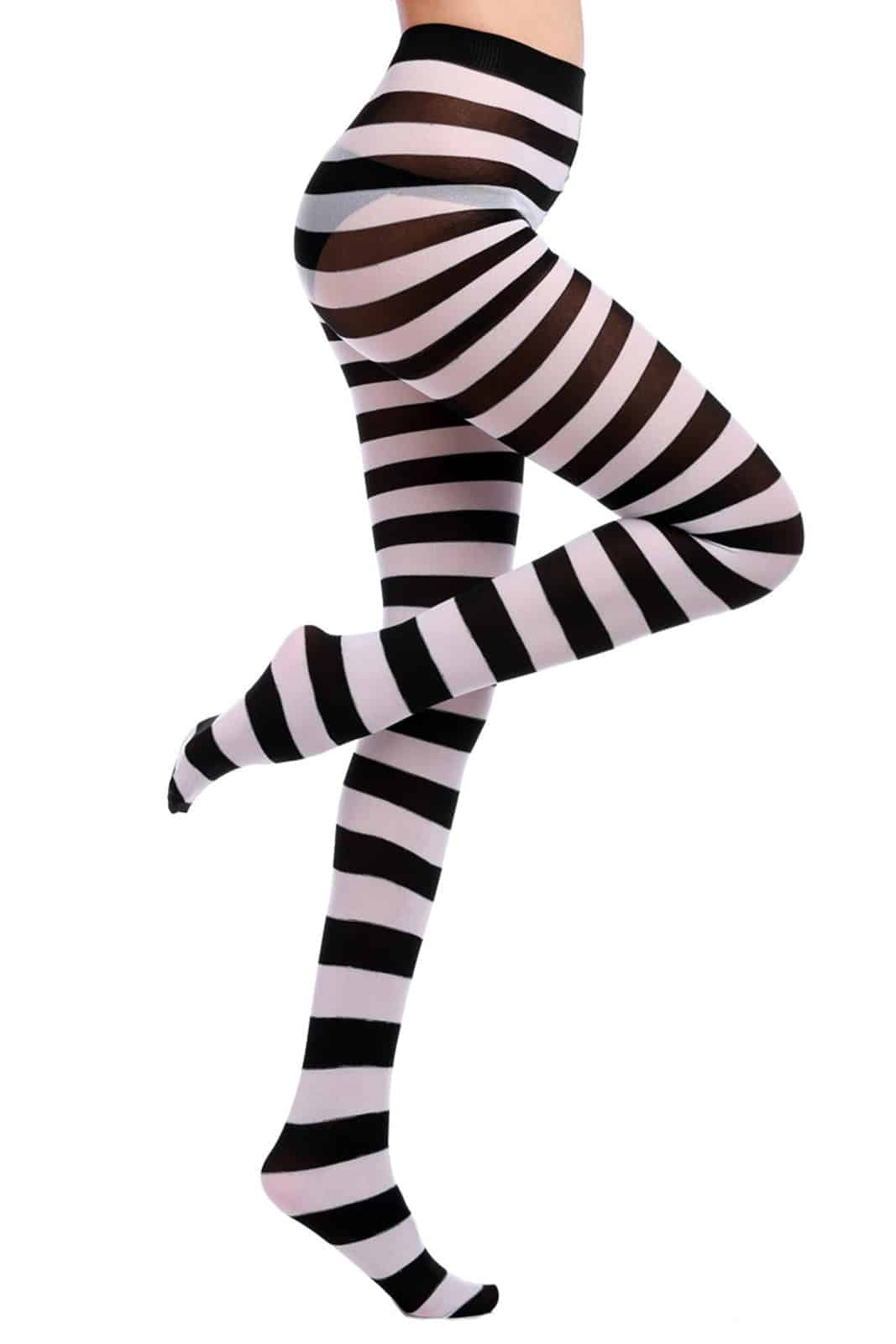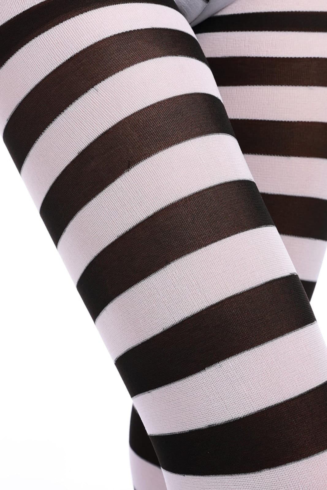 Strumpfhose aus feinmaschigem Netz in schwarz/weiß gestreift für alle Gelegenheiten.