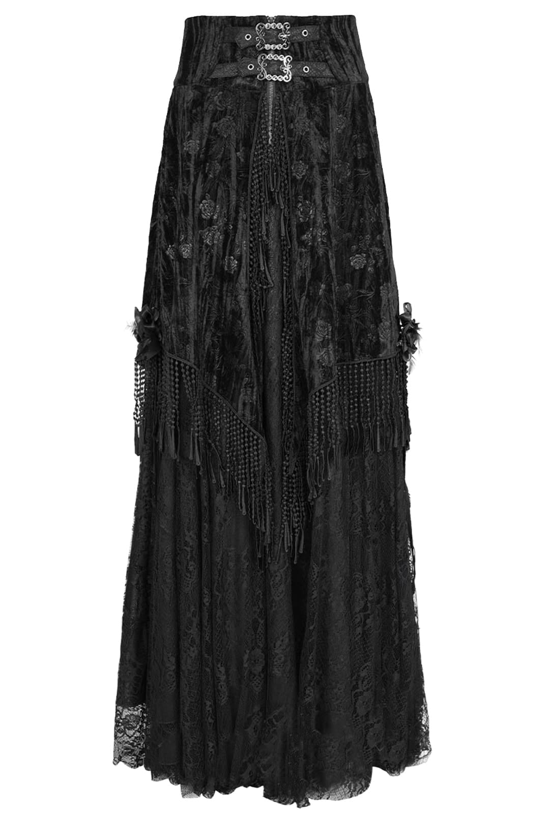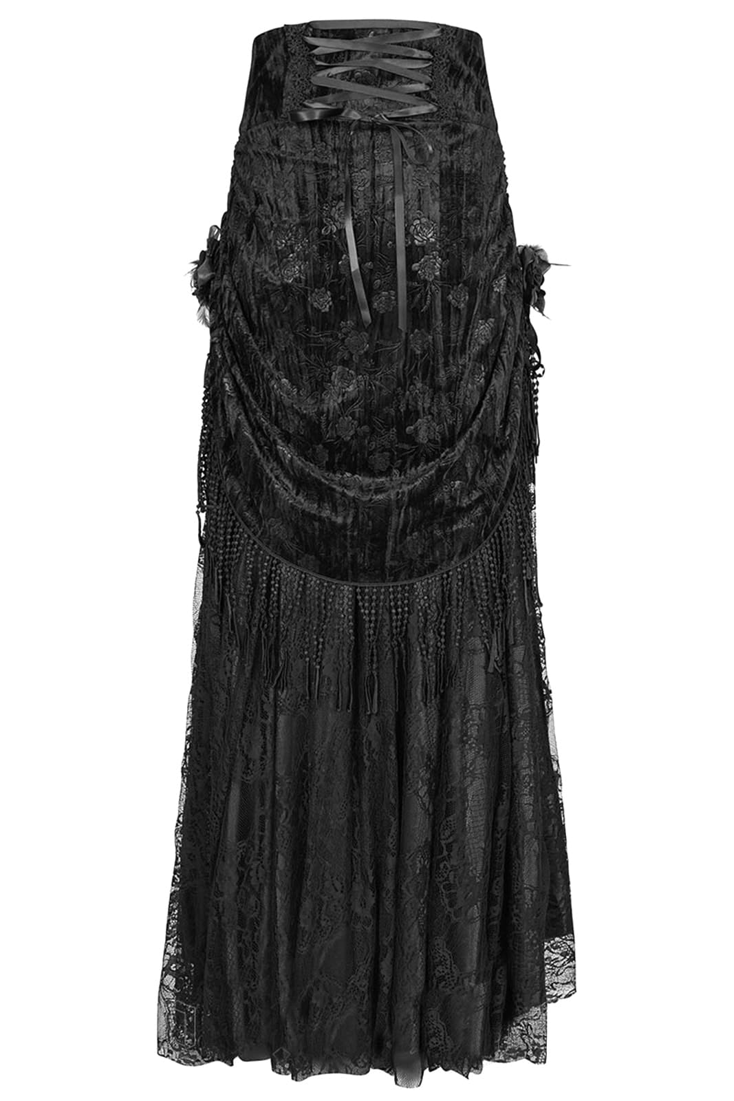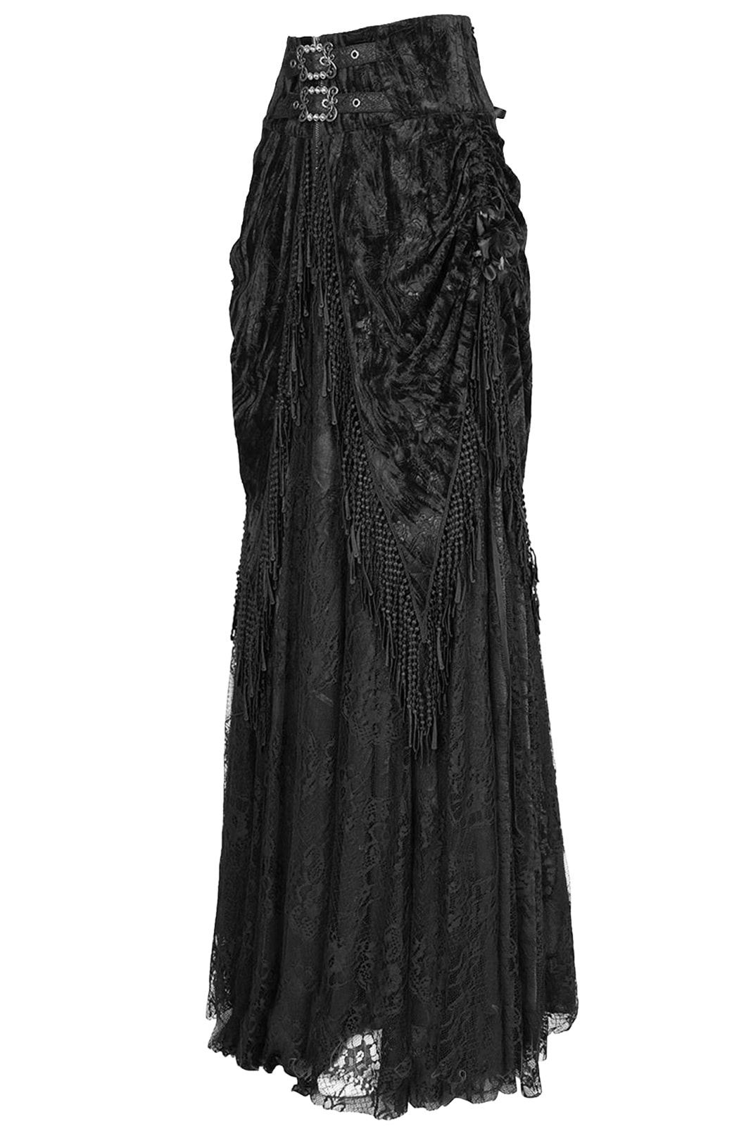 Ein Kleidungsstück wie aus einer dunklen Legende – fließend, geheimnisvoll und voller opulenter Details, die jede Bewegung in Szene setzen.