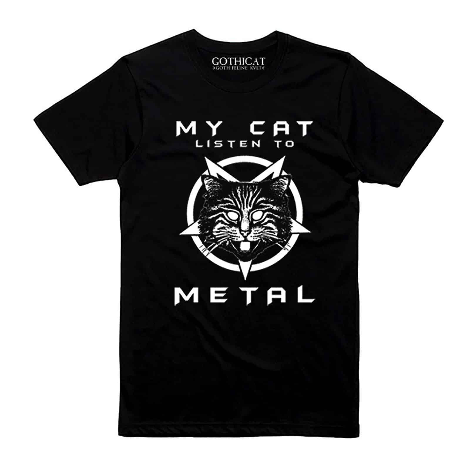 Hochwertiges T-Shirt mit aufwändigem Frontprint im Occult Cat-Style.