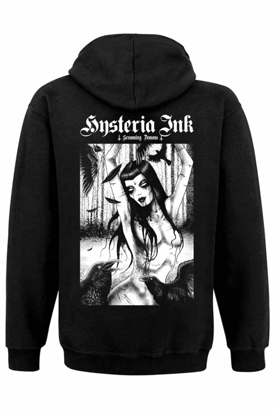 Gothic Kapuzenjacke aus hochwertiger Baumwolle mit aufwändigem Rückenprint. Vorn mit durchgehendem Reißverschluß und zwei Einschubtaschen. Auf der linken Brust ist das Hysteria Ink Logo aufgedruckt.