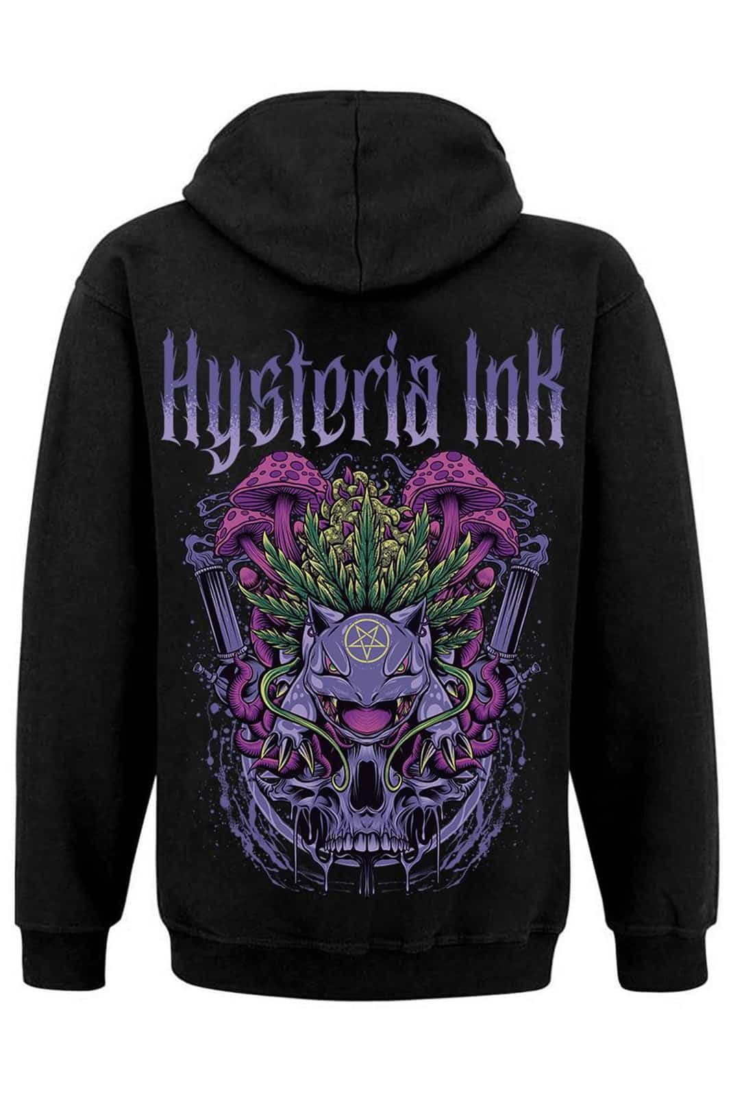 Gothic Kapuzenpullover mit großflächigem Rückenprint im Occult Style. Aus reiner Baumwolle, mit Kapuze, durchgehendem Frontreißverschluss und zwei Seitentaschen. Unisex.