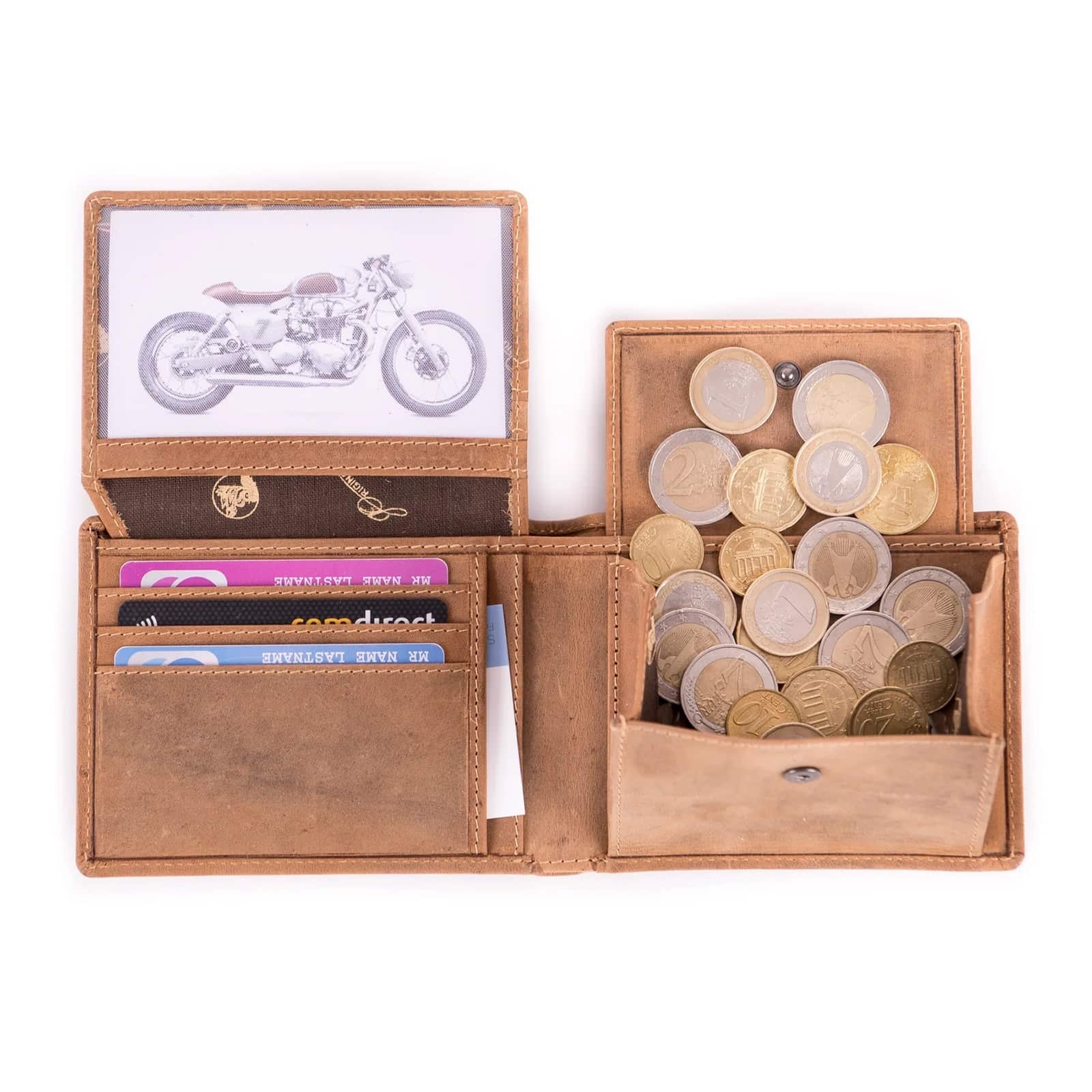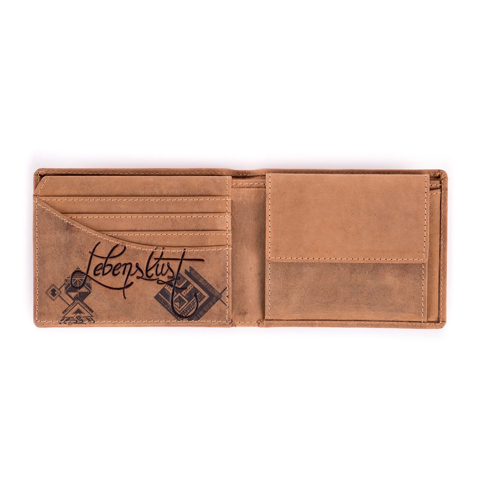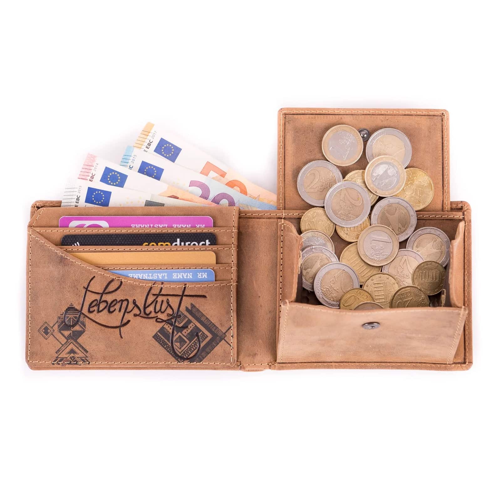 Geldbörse im Querformat mit Motiv aus Büffelleder.