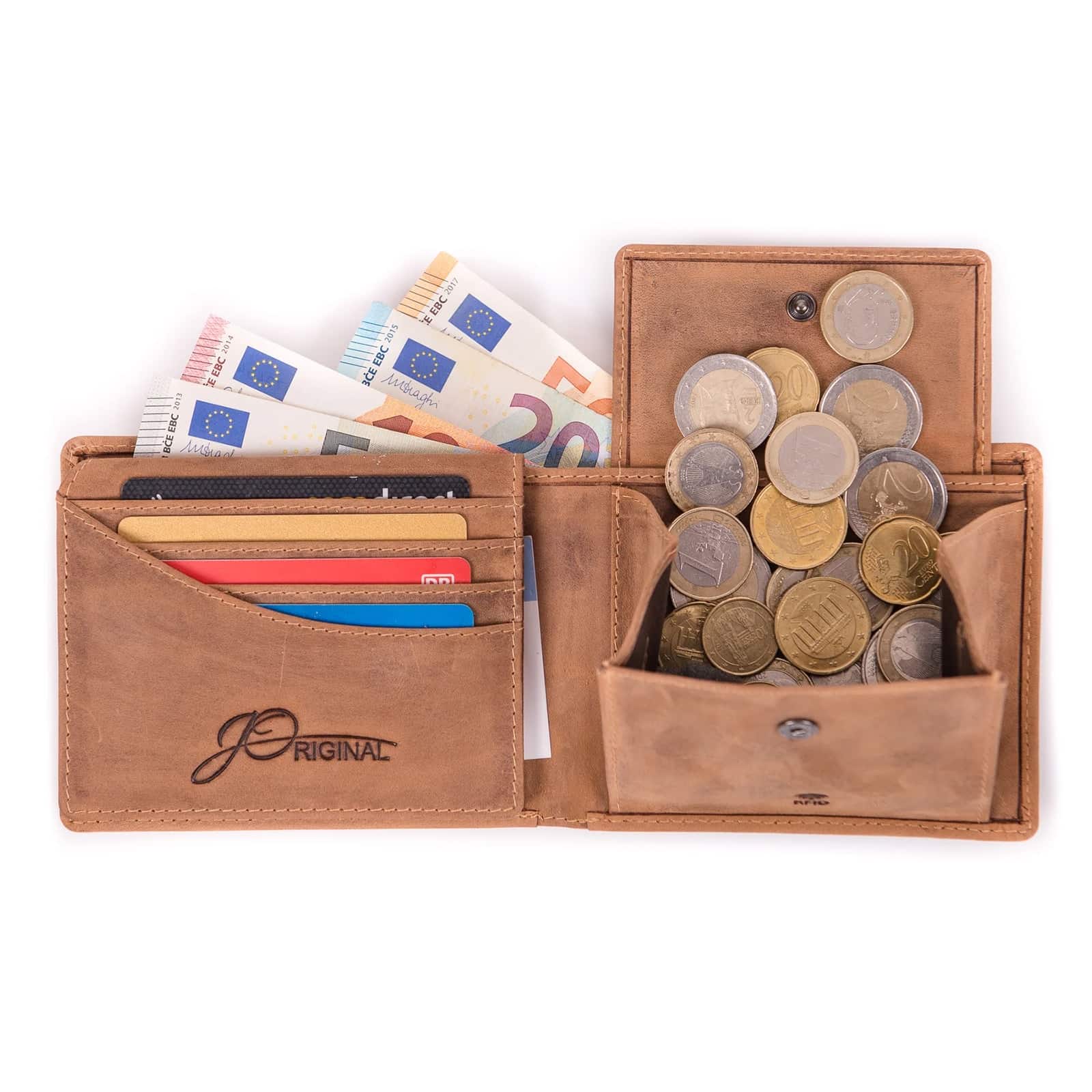 Jede JOriginal-Geldbörse ist ein Unikat und die bei diesem Leder auftretende unregelmäßige Narbung, Kratzer sowie der eventuelle Abrieb der Farbe unterstreichen die Echtheit.