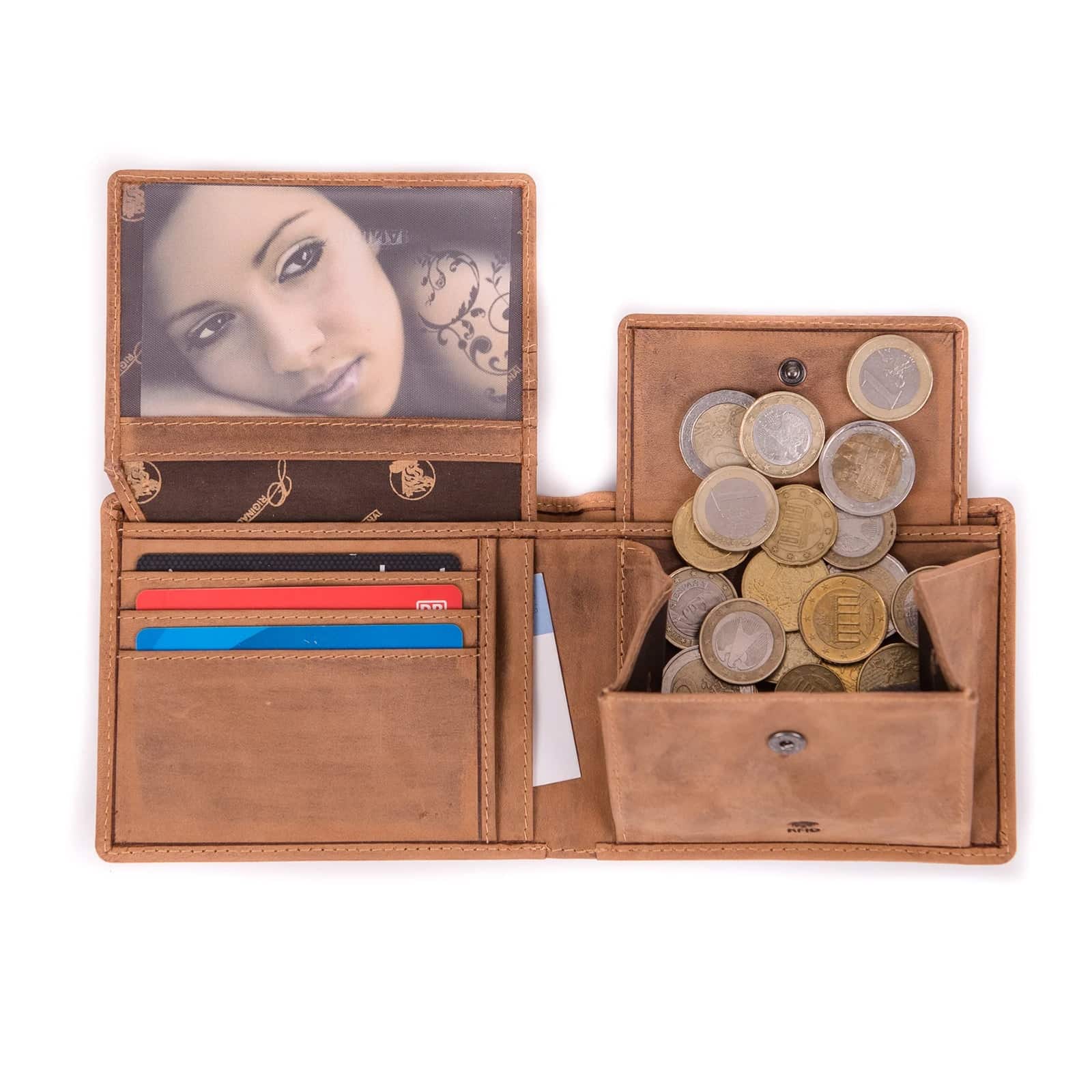 Geldörse im Querformat mit Motiv aus Büffelleder.