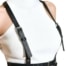 Gürtel mit Tasche und Lacklederimitat mit verstellbaren Verschlüssen, Oberschenkelgurt und abnehmarer Tasche.
