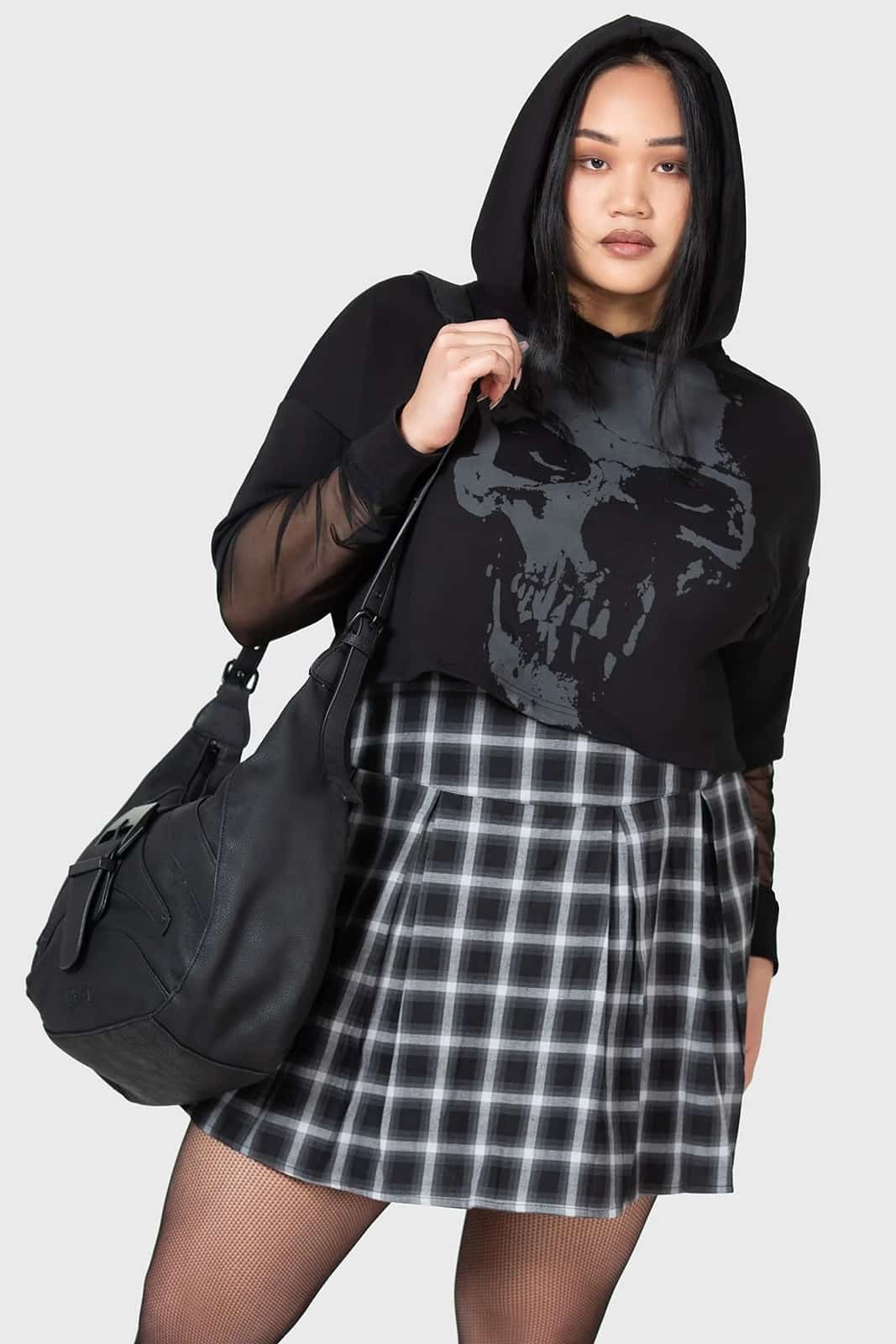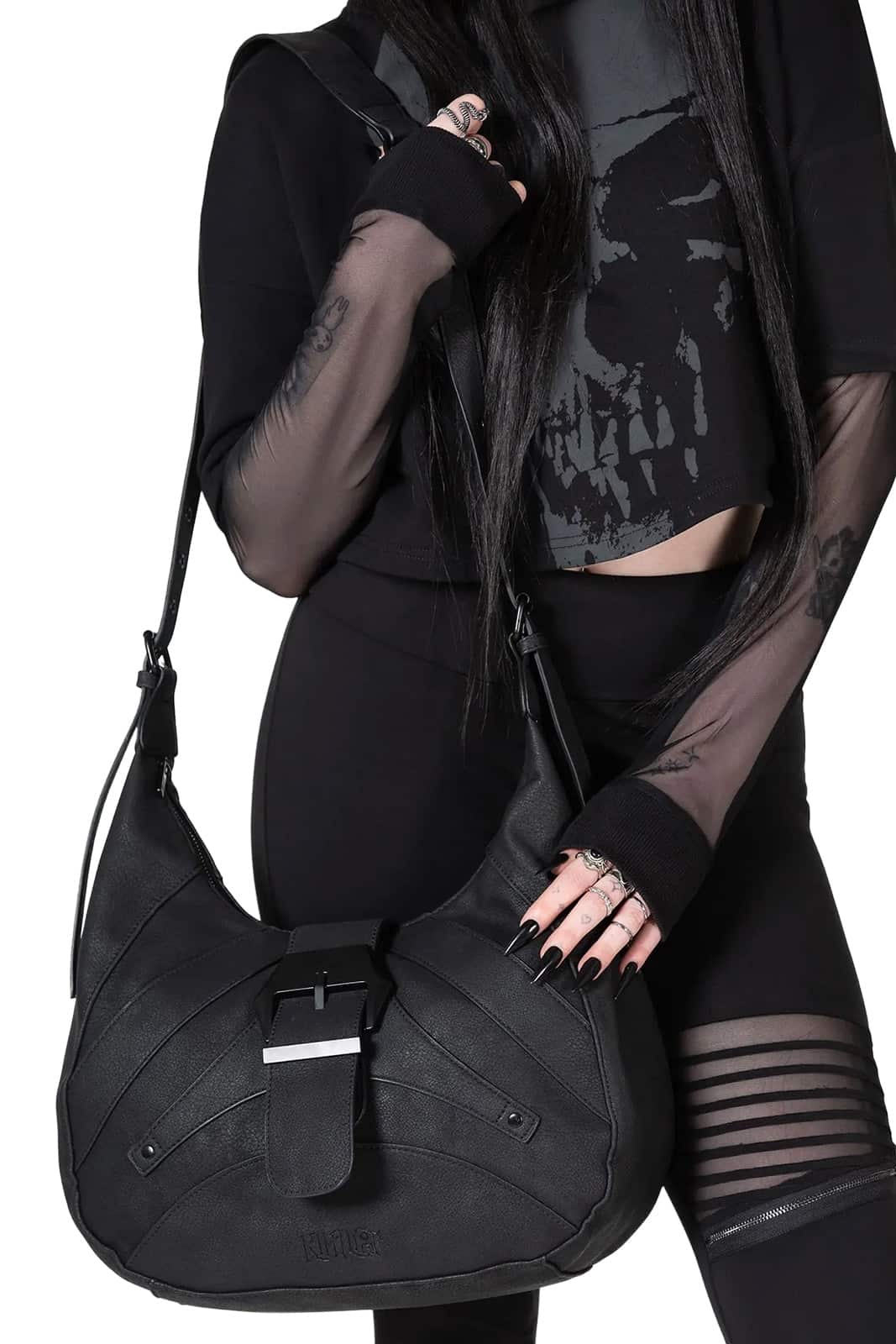 Diese schwarze Tasche aus der Kihilist-Reihe von Killstar kombiniert Funktionalität mit einem dunklen, edgy Design. Gefertigt aus weichem, strukturiertem Kunstleder und ausgestattet mit verstellbarem Schulterriemen, bietet sie nicht nur Komfort, sondern auch ausreichend Stauraum. Innenfächer und ein äußeres Reißverschlussfach sorgen für Ordnung, während die schwarzen Hardware-Details den Look abrunden. Perfekt für Alltag und Nachtleben.