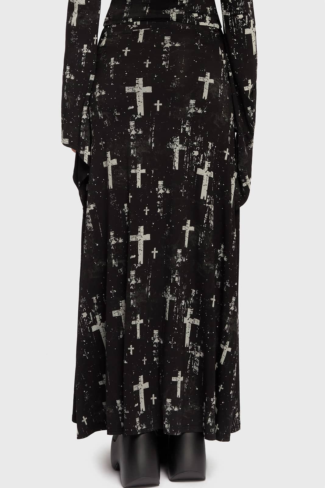 Ein Hauch dunkler Liturgie – das Tenebris Chapel Kleid verbindet fließende Eleganz mit okkulter Symbolik. Der markante Kreuzprint trifft auf sinnliche Schnittelemente und verleiht dir eine ausdrucksstarke, mystische Präsenz.