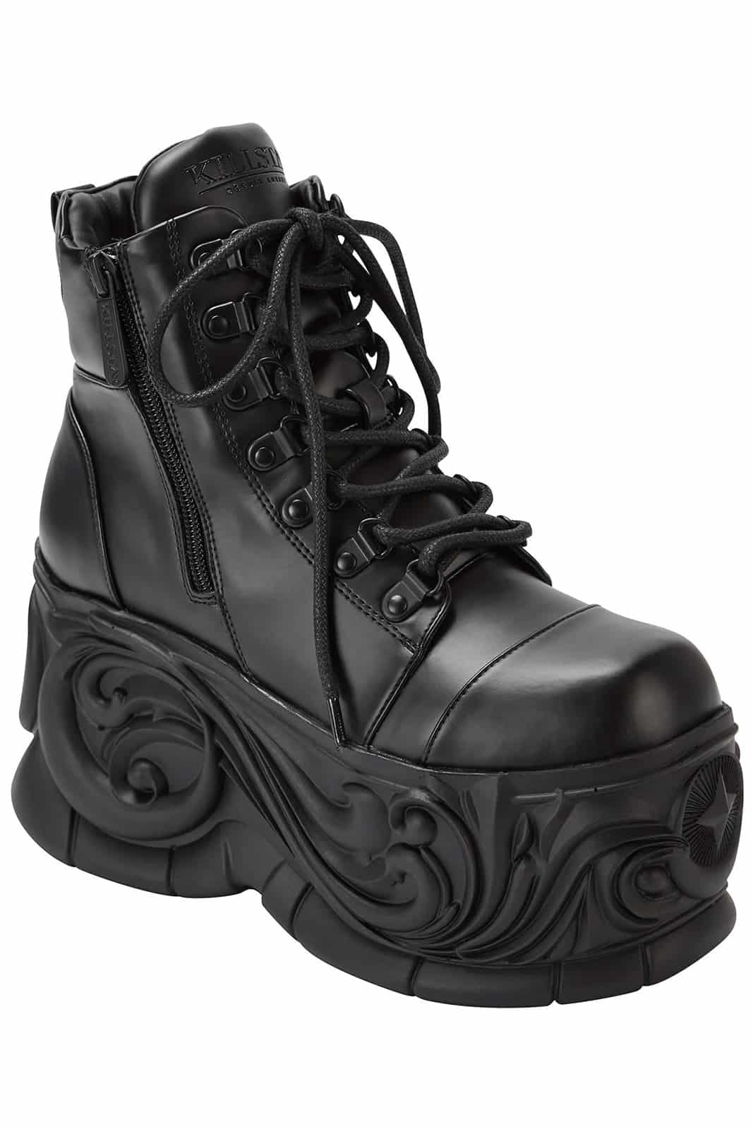 Die Stiefeletten Cosmic Souls werden all Deine Wünsche erfüllen – ganz in schwarzem, luxuriösem Kunstleder.