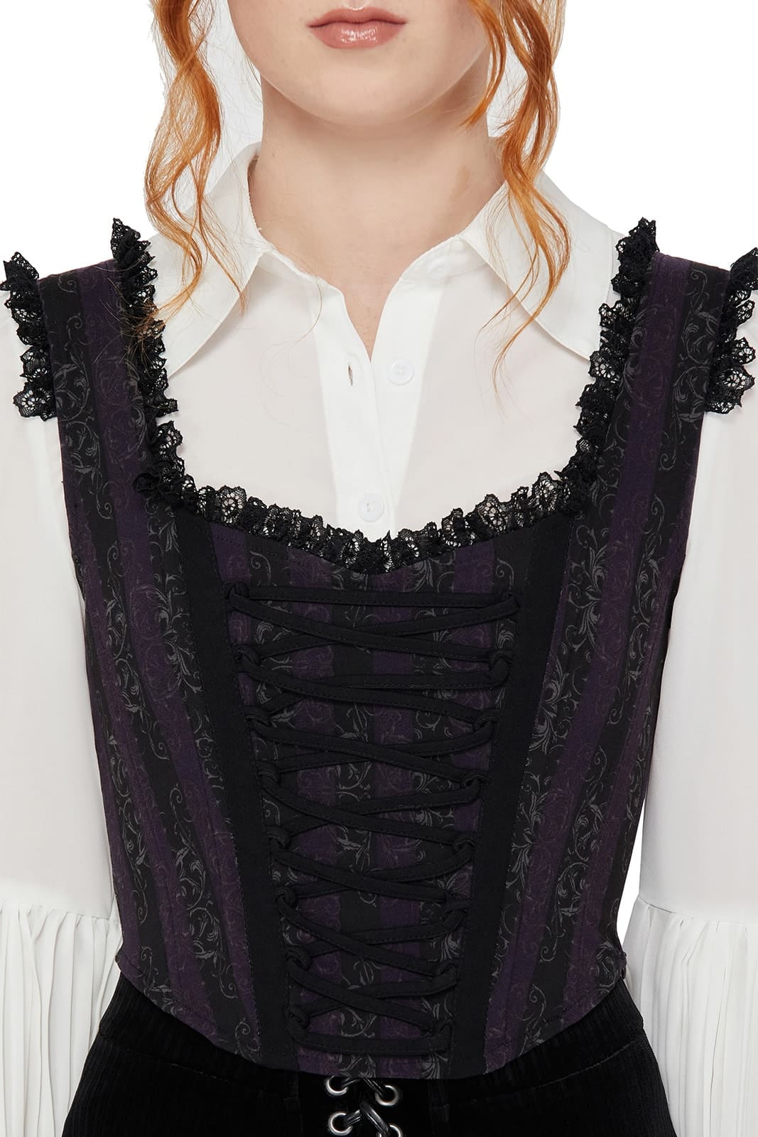 Das Haunted Phase Kleid aus der Corpse Bride Kollektion vereint düstere Romantik mit einem Hauch morbider Eleganz. Der weiche, superstretchige Stoff schmiegt sich angenehm an und setzt den allover Corpse Bride Print eindrucksvoll in Szene. Zarte Spitzenabschlüsse und das fixe Schnürdetail vorn verleihen dem Design eine verspielte, viktorianische Note – perfekt für alle, die Tim Burton Vibes lieben.