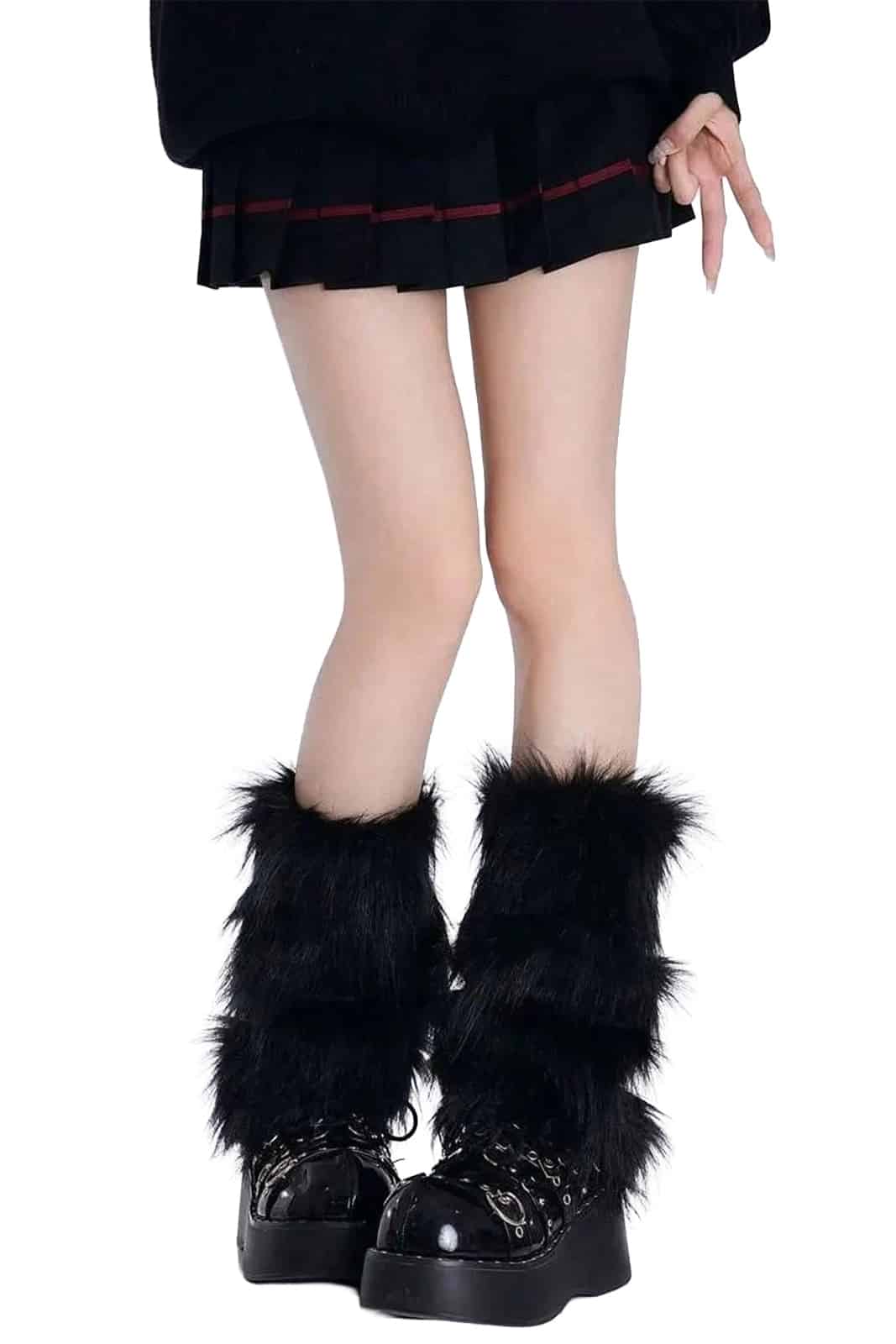 Diese flauschigen Beinstulpen verleihen jedem Outfit eine markante Dark-Fashion-Note. Das lange schwarze Kunstfell sorgt für einen dramatischen Look und hält gleichzeitig angenehm warm. Perfekt für Gothic-, Festival- oder Winter-Outfits – ob über Boots, Plateauschuhen oder Stiefeln getragen.