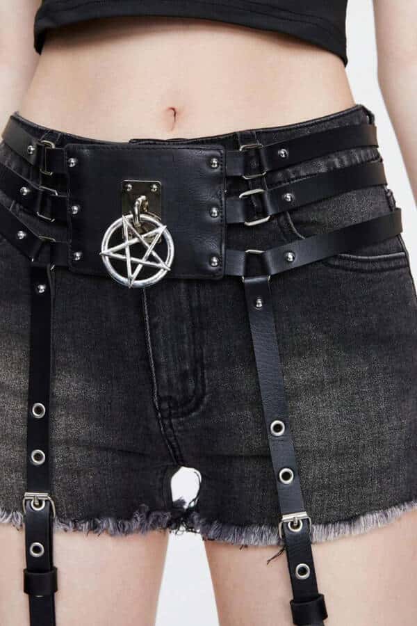 Gothic belt made from high-quality faux leather in a western style with silver rose-shaped buckles.