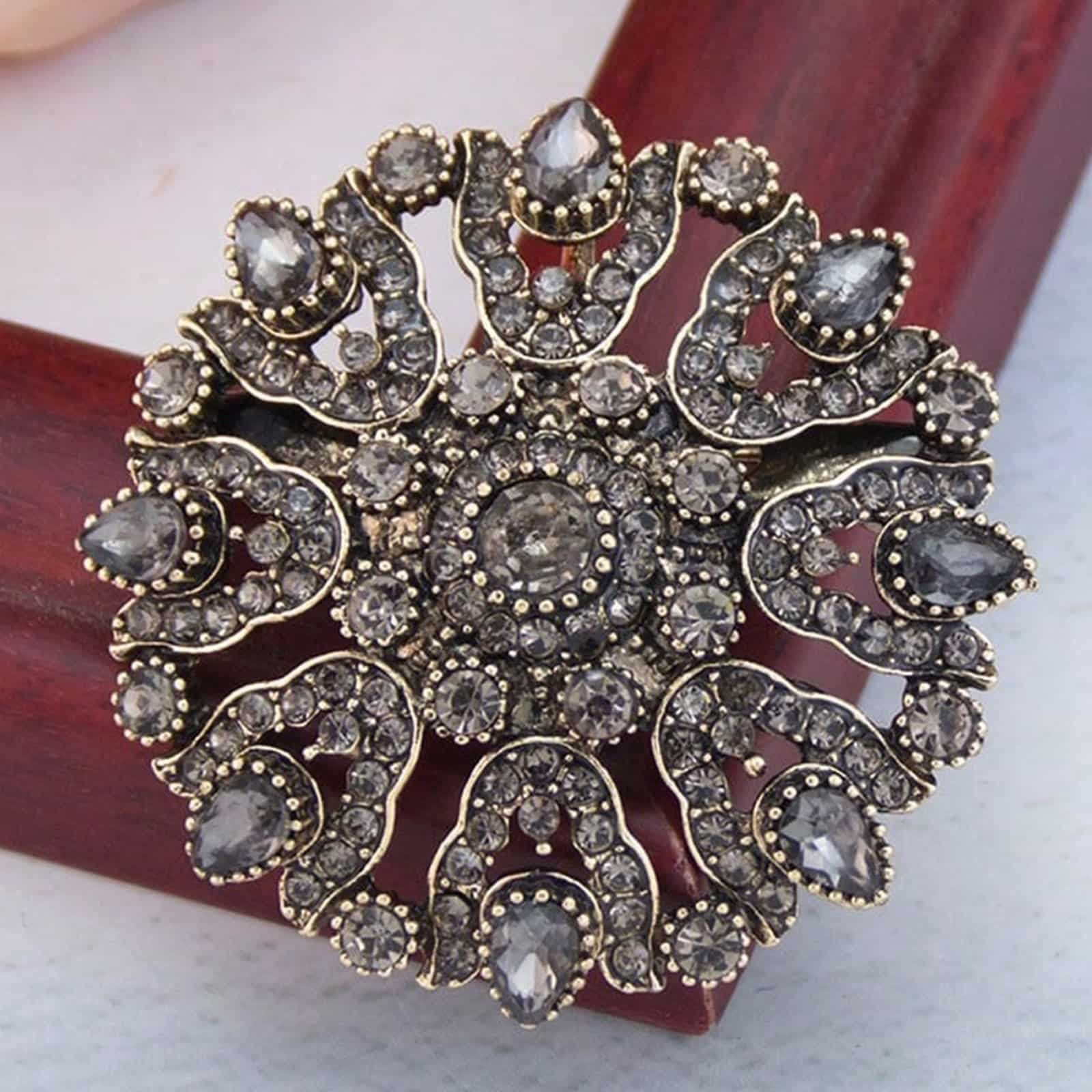 Runde Brosche im detailreichen Gothic-Barock-Stil
