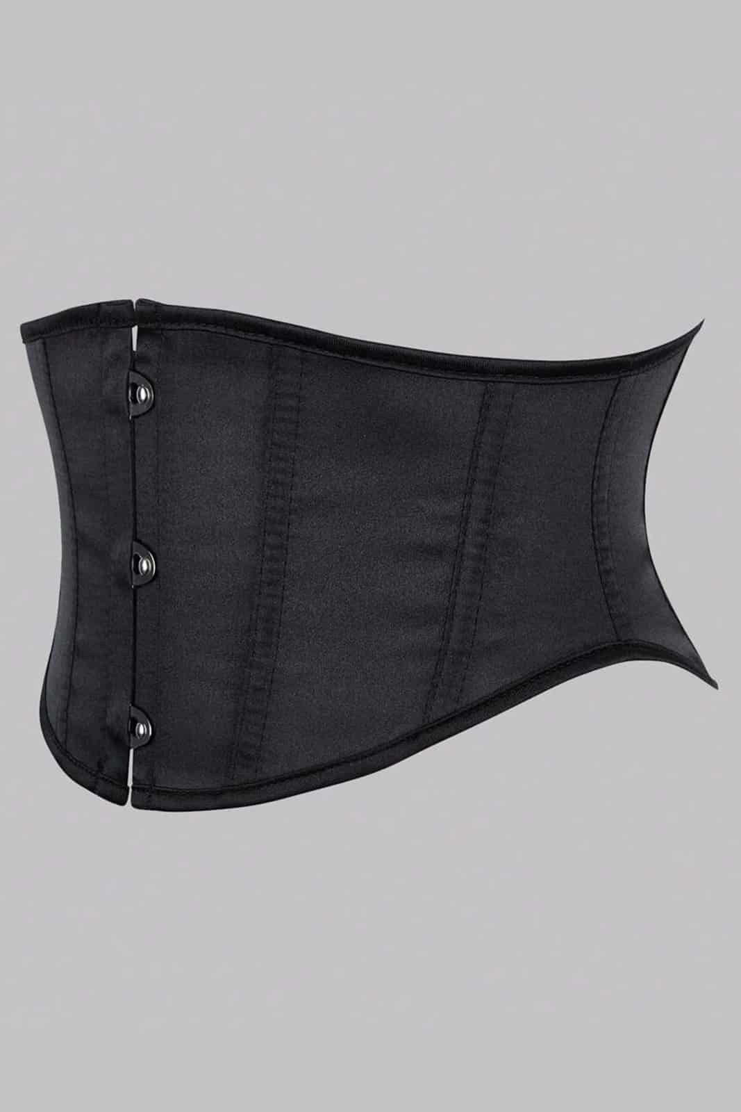 Classic gothic girdle made from a soft and durable polyester blend with three front buckles and lacing at the back. The waist is perfectly shaped by fine plastic rods (not suitable for waist reduction). The slightly shiny material is perfect for layering and can also be worn directly on the body thanks to its soft inside.
