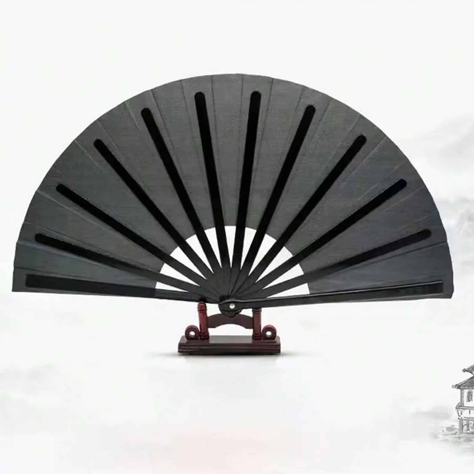 Großer Fächer aus leichtem Kunststoff mit Stoffüberzug.