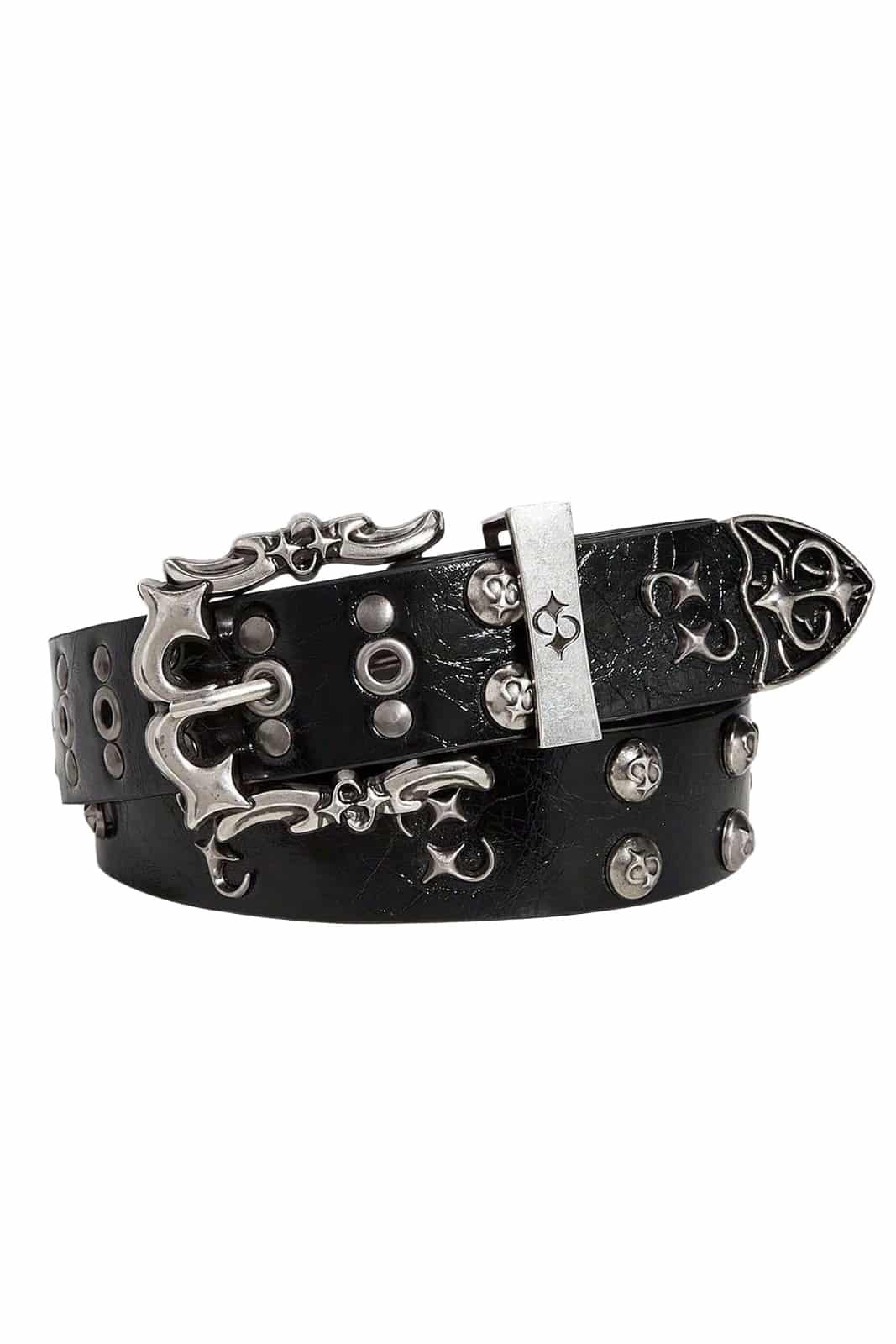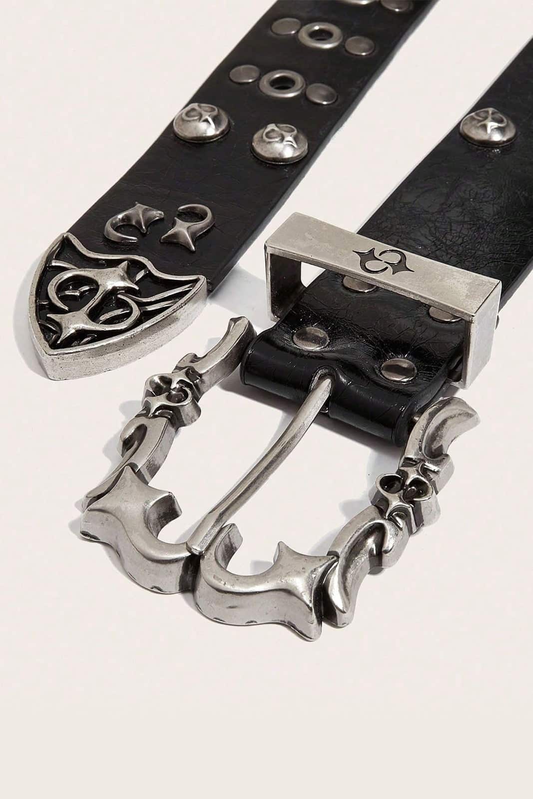 Ein markanter Gürtel mit klarer Gothic-Attitüde und detailreicher Symbolik. Der Iron Sigil Belt kombiniert eine robuste Basis mit aufwendig gearbeiteten Metallelementen, die von okkulten Zeichen und ornamentalen Formen geprägt sind. Die massive Schnalle und die dekorativen Nieten verleihen dem Gürtel eine kraftvolle Präsenz und machen ihn zum idealen Accessoire für Gothic-, Industrial- und Alternative-Outfits. Ausdrucksstark, langlebig und vielseitig kombinierbar – ein echtes Statement jenseits des Mainstreams.