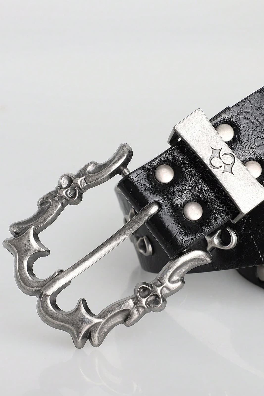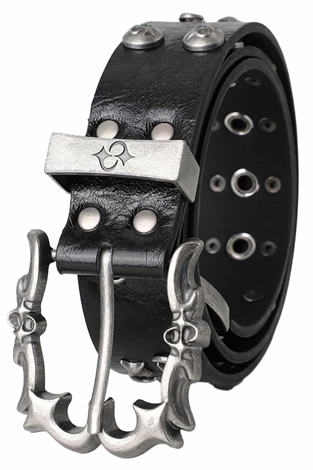 MKraftvoll, roh und mit okkulter Ausstrahlung – dieser Gürtel zieht mit seiner markanten Schnalle und den massiven Nieten alle Blicke auf sich. Das Zusammenspiel aus dunklem Material und antik wirkender Metalloptik verleiht ihm eine unverwechselbare Gothic-Attitüde.