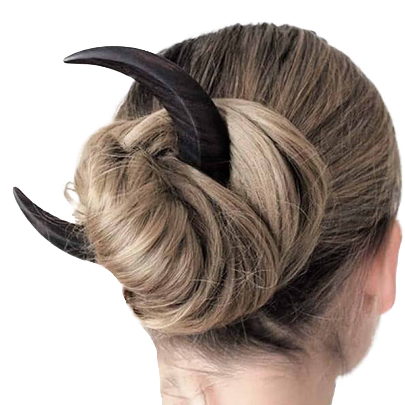 Schwarze Haarnadel in Form eines Halbmondes aus Holz.