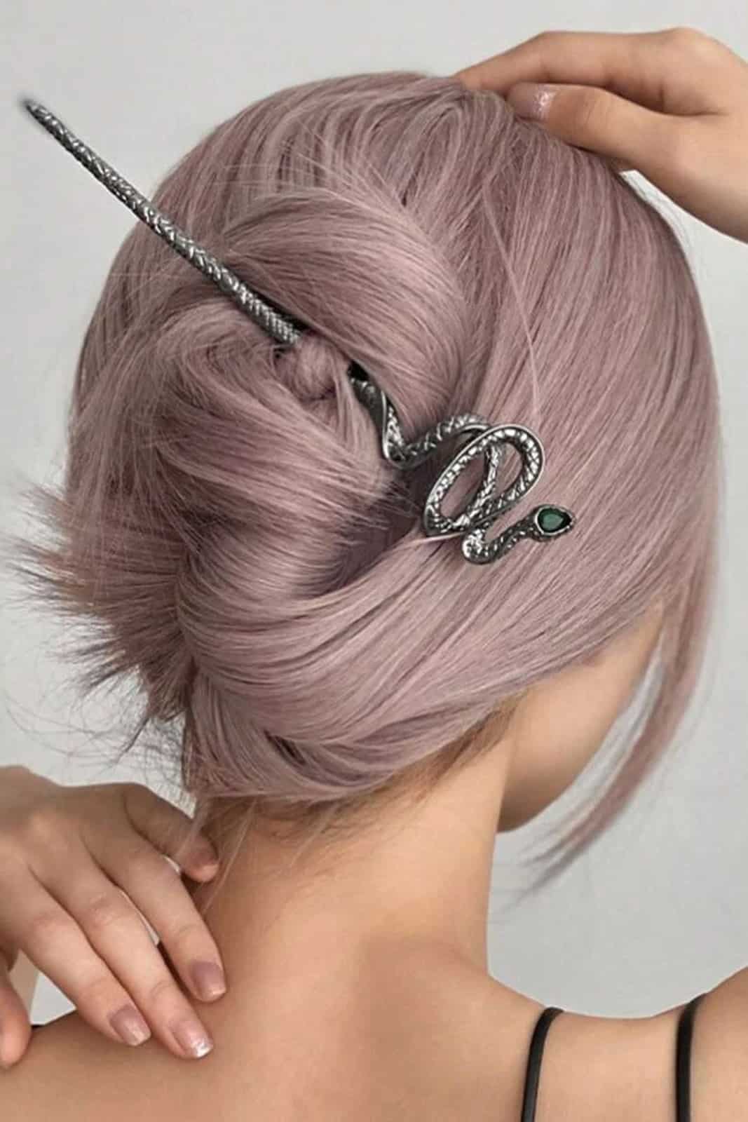 Silberne Haarnadel in Form einer Schlange aus einer nickelfreien Zinklegierung.
