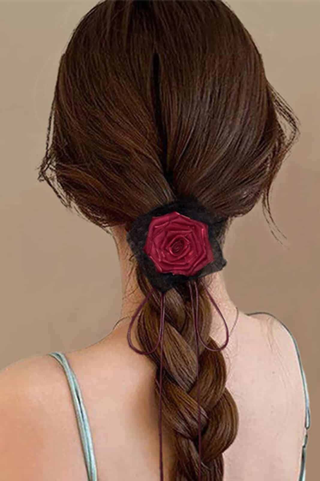 Wunderschöne rote Rose auf schwarzer Spitze mit Bindeseil für die Haare.