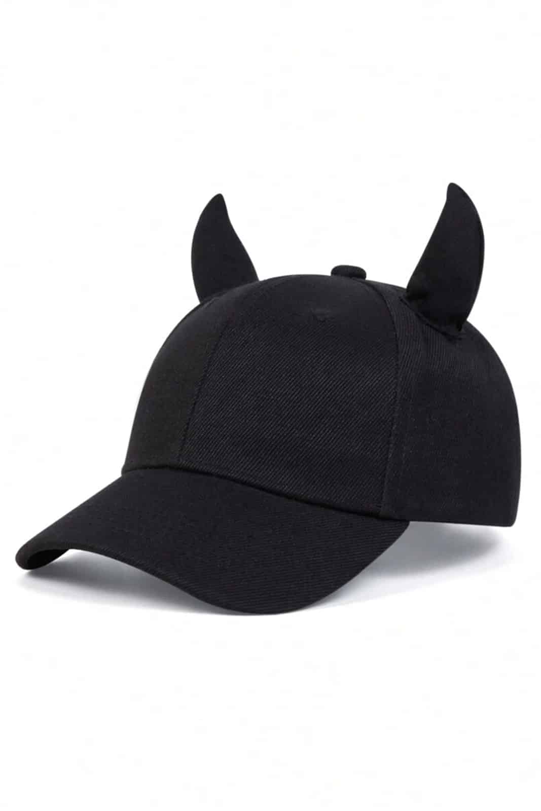 Schildmütze mit verstellbarem Klickverschluß und kleinen schwarzen Hörnern. Passend für Kopfgröße 54-57.