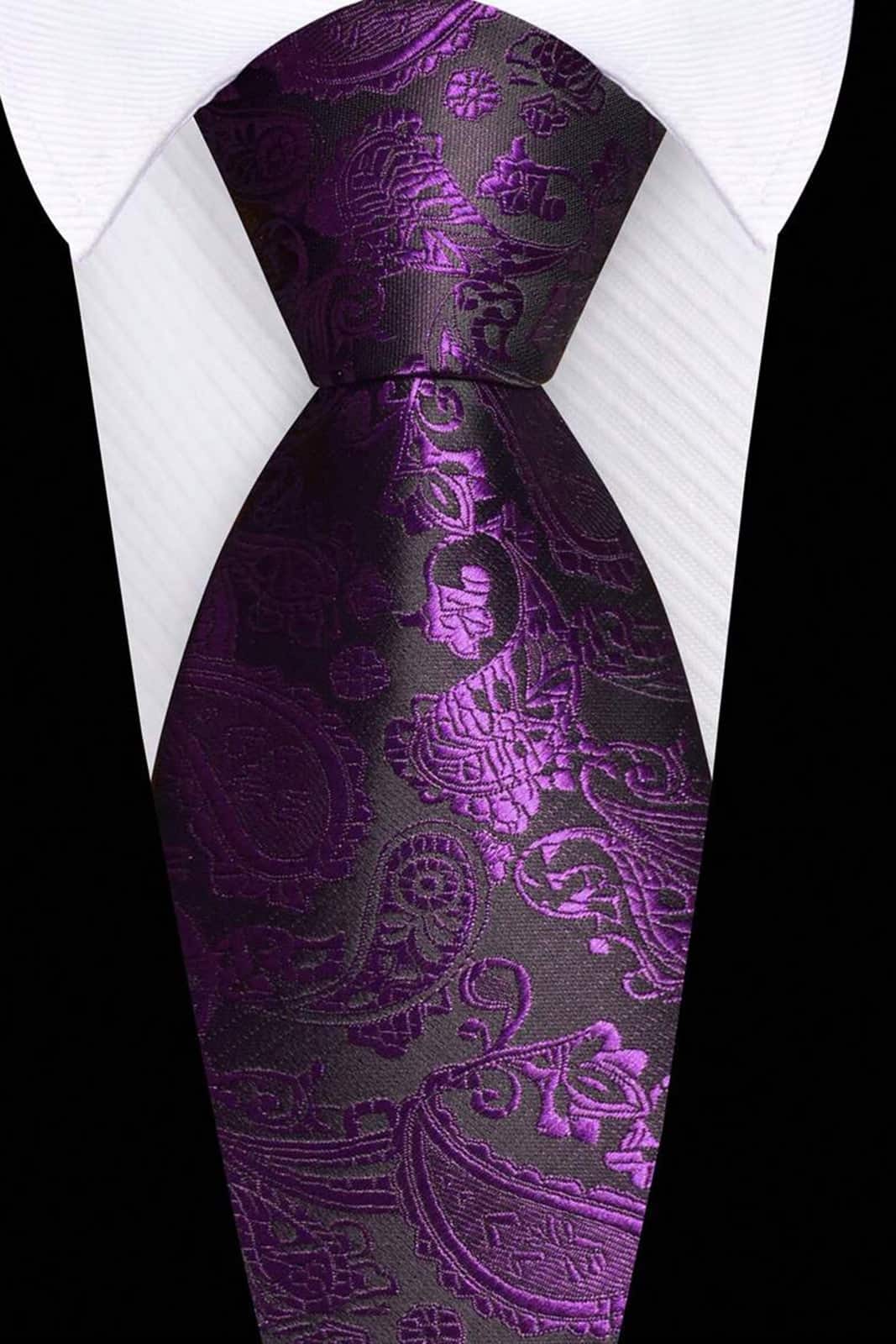 Wunderschöne, leicht glänzende, schwarze Krawatte mit tollem, lilanem Paisley-Muster.