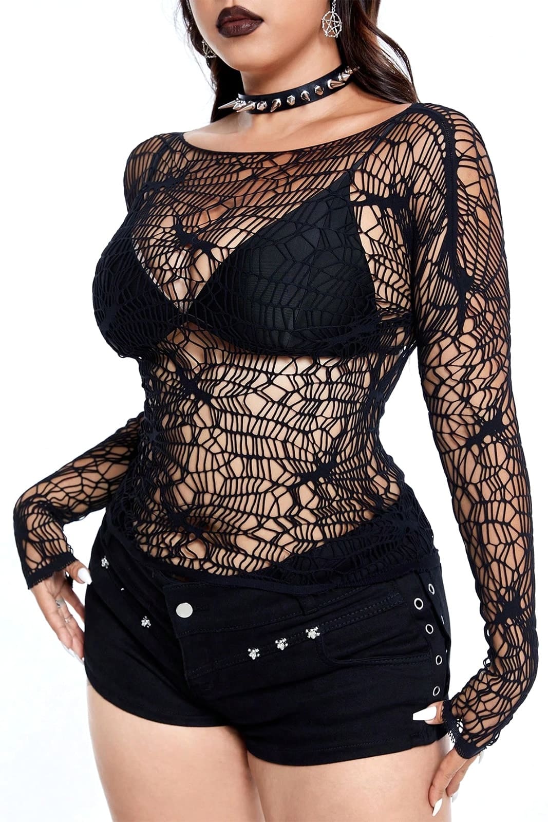 Ein provokantes Layering-Piece mit klarer Gothic-Attitüde. Das Webshade Longsleeve Top überzeugt durch seine markante Spinnweben-Optik und die körpernahe, flexible Passform. Transparente Struktur trifft auf dunkle Ästhetik – ideal zum Kombinieren über Bralettes, Tops oder Bodys. Ein bewusst reduziertes Design, das wirkt, ohne sich aufzudrängen.