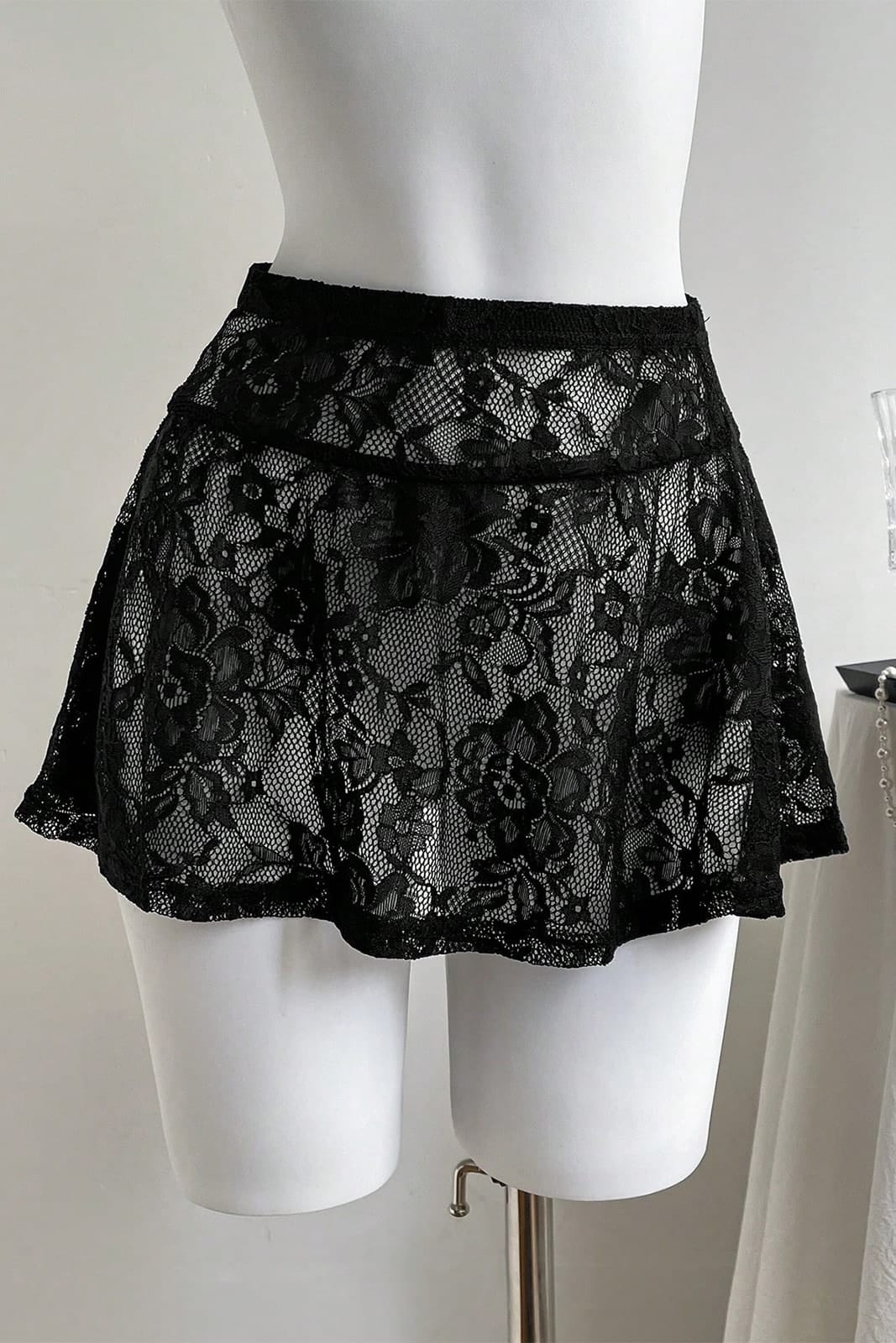 Transparenter Minirock aus floraler Spitze