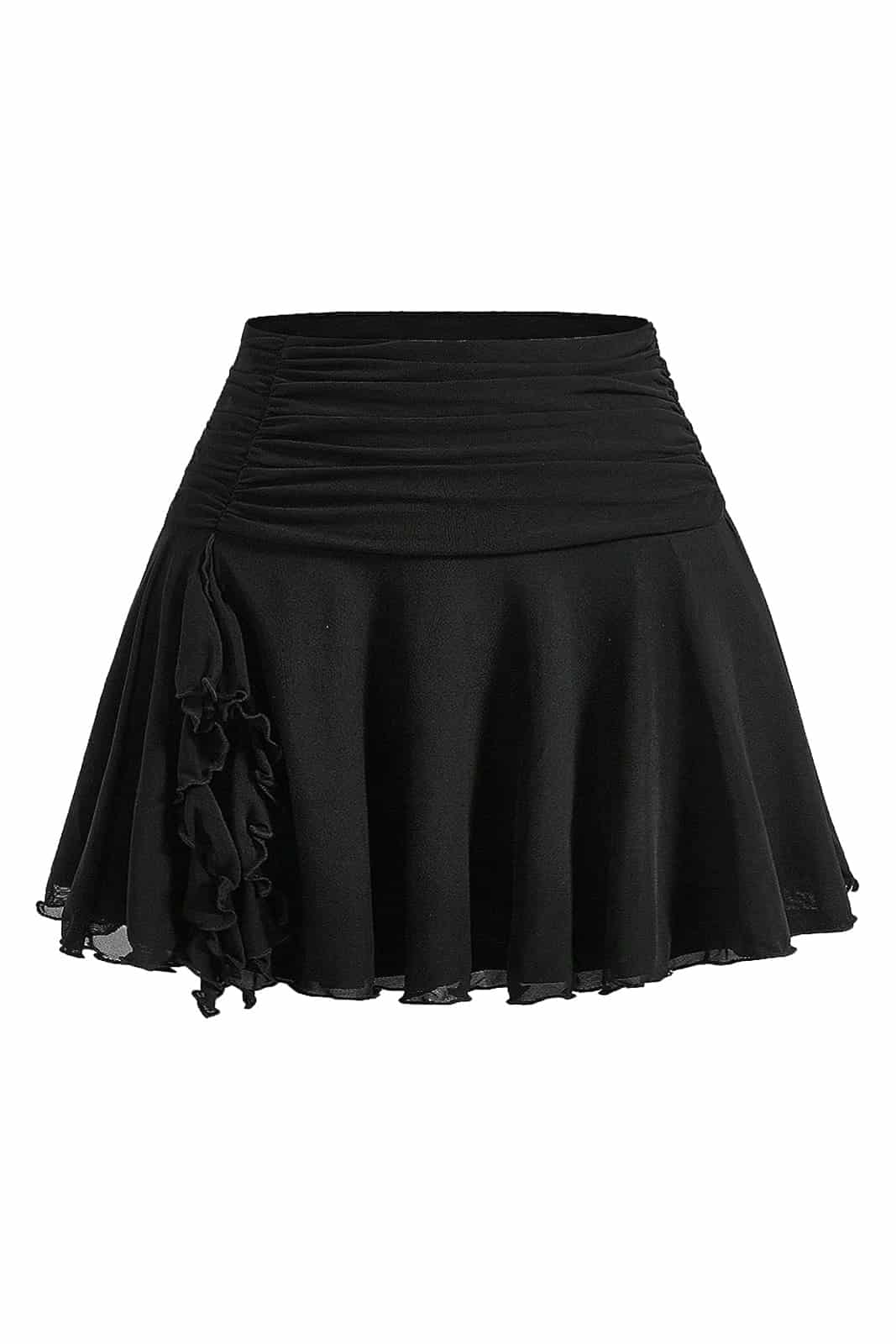 Schlicht mit raffinierter Note – der Velvet Eclipse Minirock überzeugt durch seine weich fallende Silhouette und das geraffte Taillenband, das die Figur sanft betont. Das dezente Rüschendetail an der Seite setzt einen verspielten Akzent und verleiht dem Look eine feminine, dunkle Eleganz. Perfekt kombinierbar mit Corsage, Mesh-Top oder Oversize-Strick für vielseitige Gothic-Styles.