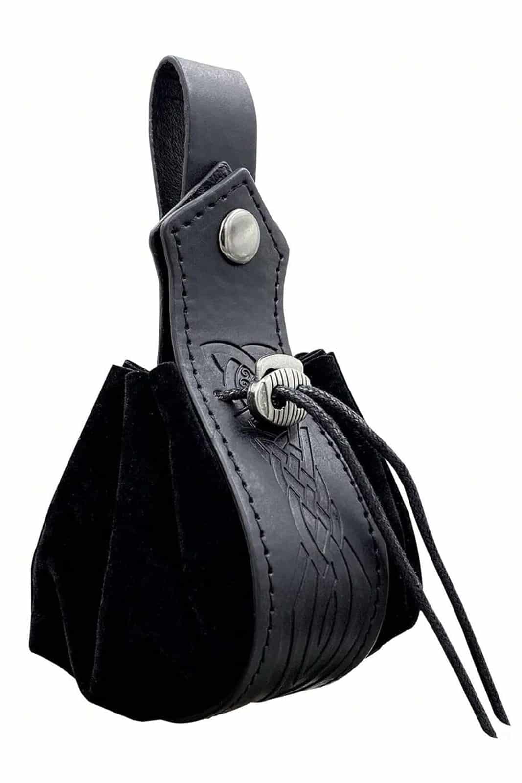 Kleine Münschtasche mit geräumigem Innenfach und Kordelzug. Mit Kunstlederschlaufe zum Anhängen an einen Gürtel bis zu einer Breite von 5 cm