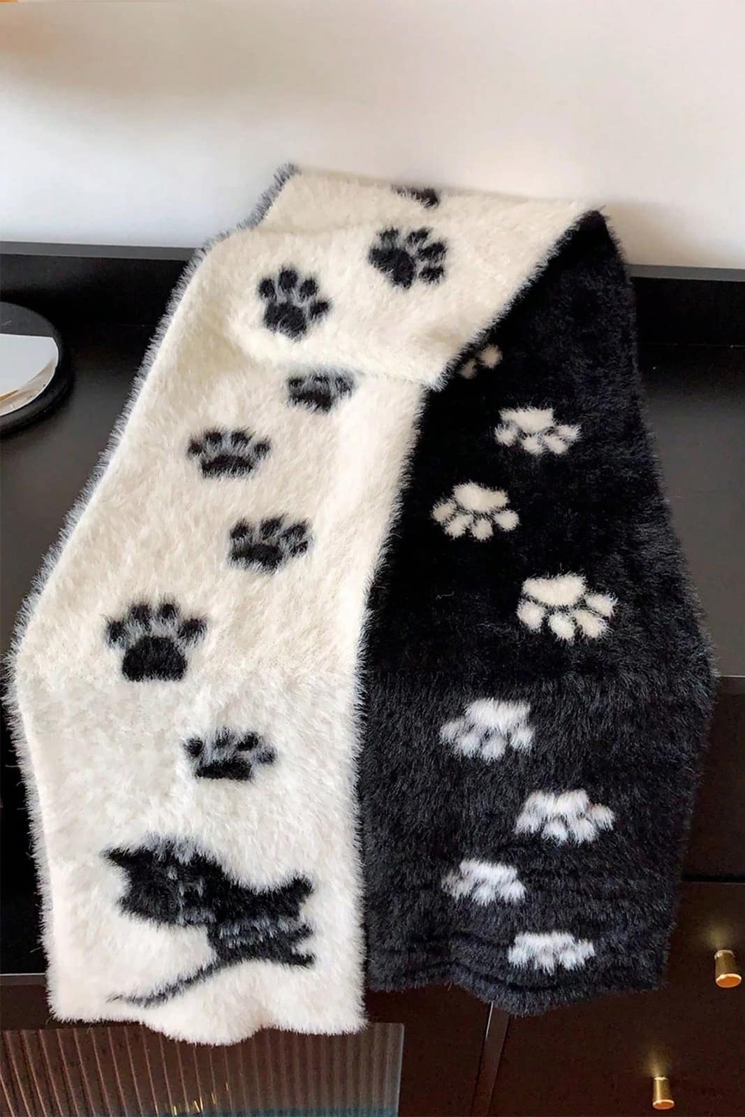 Umkehrbarer Schal mit Katzen- und Pfotenmotiv