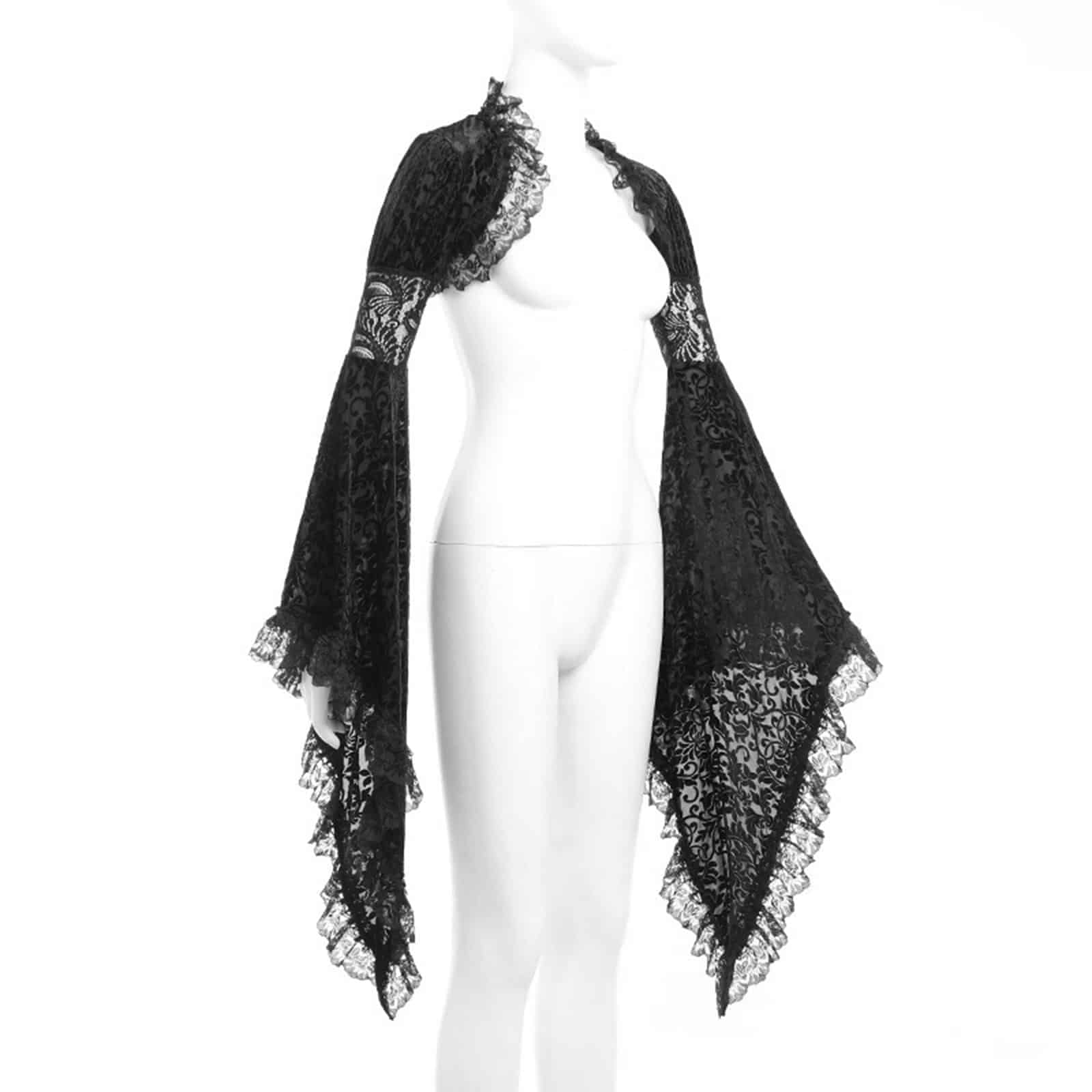 Wie aus Zauberhand gefertigt erscheint der Bolero Luna Blood mit seinen unglaublich schönen Trompetenärmeln. In Höhe der Oberarme sind die Ärmel mit einem schönen Spitzengewebe unterbrochen.